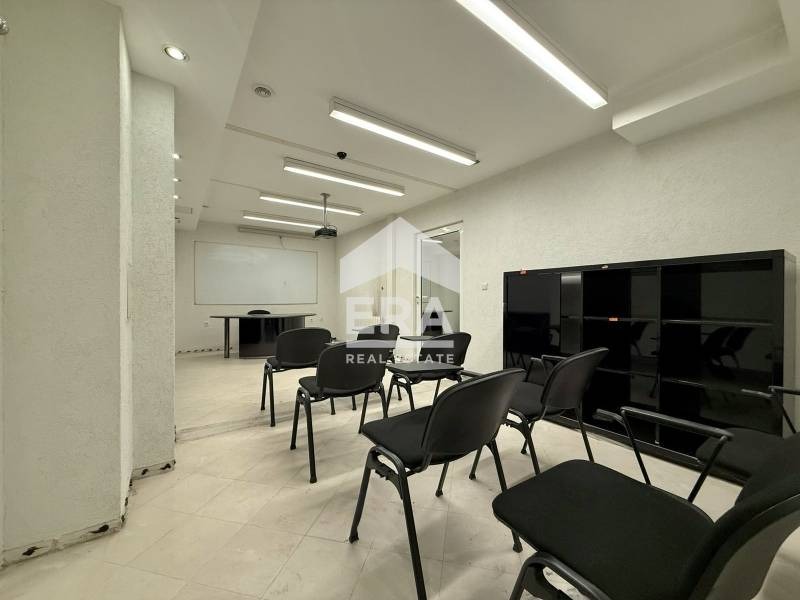 Сутерен около 115 кв. м.: Няколко самостоятелни зали, конферентна зала, оборудвана със столове, проектор и дъска, допълнителни функционални помещения.