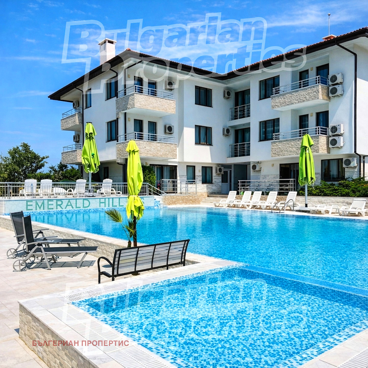 Комплексът е от затворен тип, с отлично поддържани луксозни общи части, мраморни алеи и красиво озеленяване. На разположение на собствениците и гостите са басейн, зони за отдих и спокойна, сигурна среда идеална както за семейства, така и за ваканционно ползване.