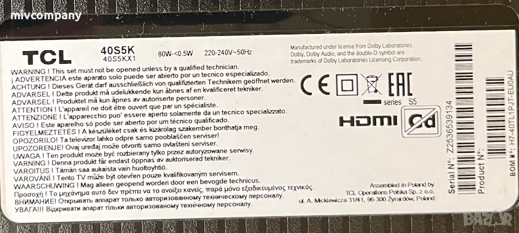 Смарт телевизор ''40 TCL 40S51K QLED SMART TV, ANDROID TV → Обява 53861223
