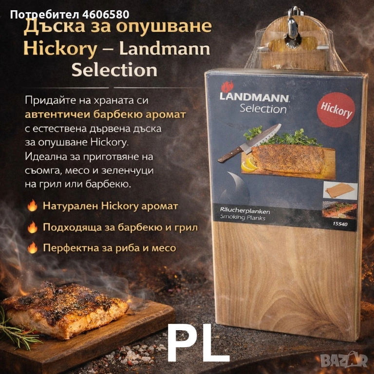 Дъска за опушване от естествено дърво Hickory, която придава богат опушен аромат на месо, риба и зеленчуци. Идеална за приготвяне на вкусни BBQ специалитети.