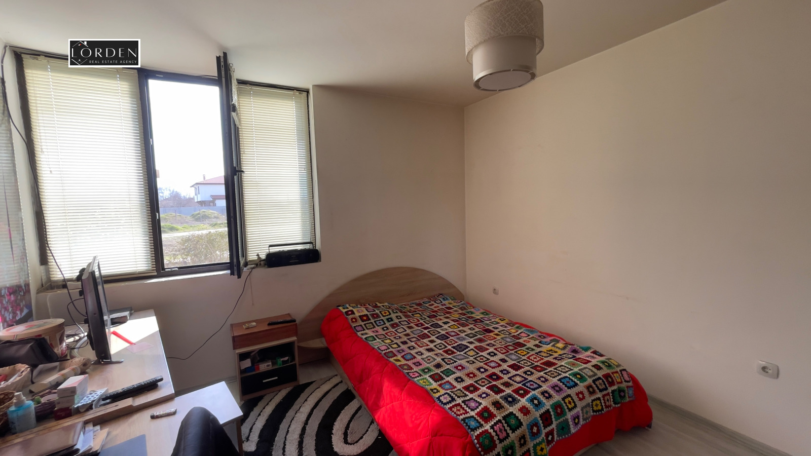 Агенция за недвижими имоти LORDEN продава тристаен обзаведен апартамент, разположен на първи (партерен) етаж от масивна жилищна сграда. Жилището е със самостоятелен вход, южно изложение и се продава с наличното обзавеждане и оборудване. Площта му е функционално разпределена между дневна с кухня, две спални, баня с тоалетна и коридор. За уютните вечери на открито има градина и барбекю.