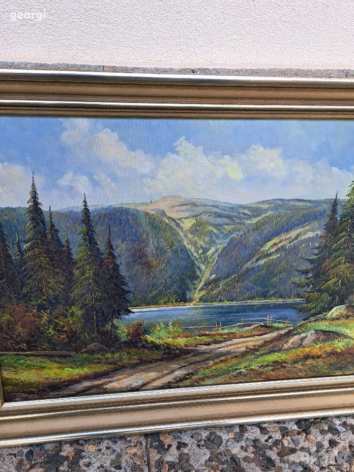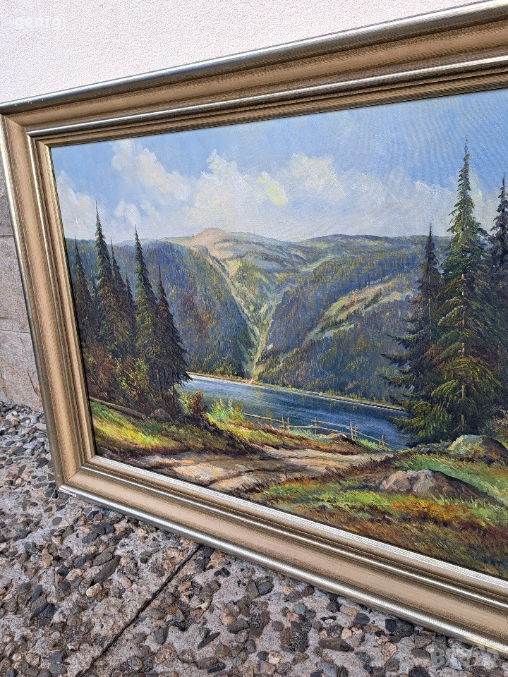 картина планински пейзаж маслени бои върху платно → Обява 53861518