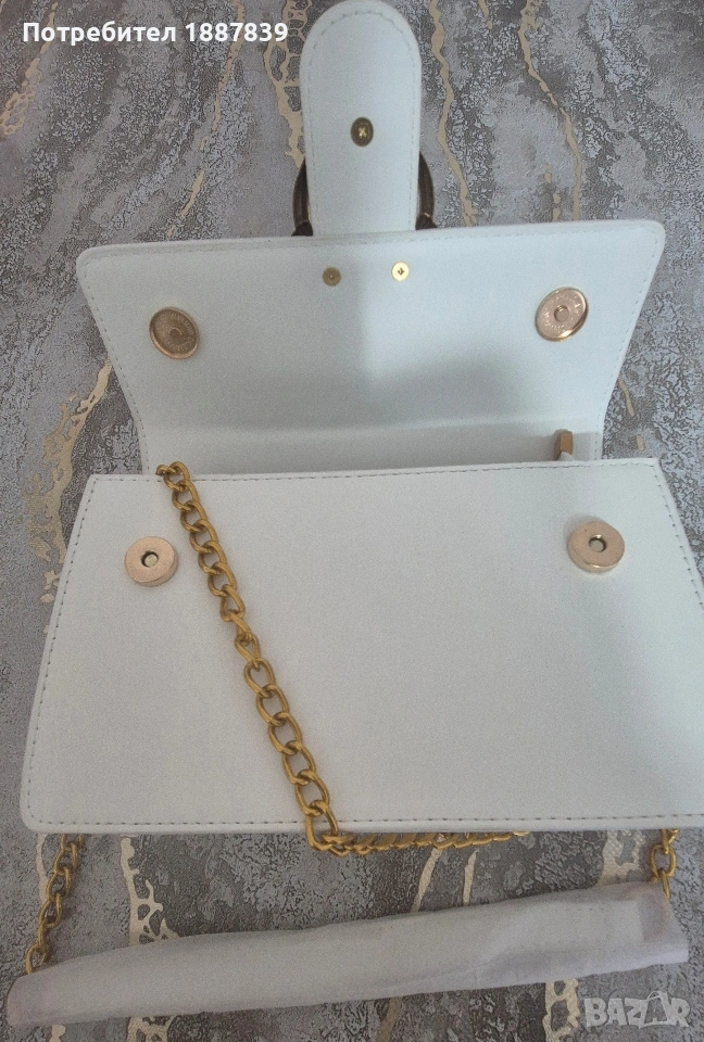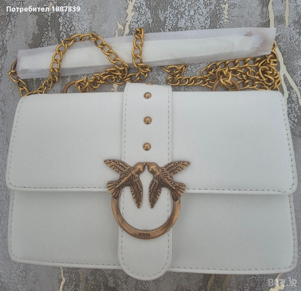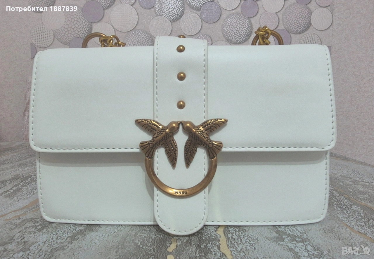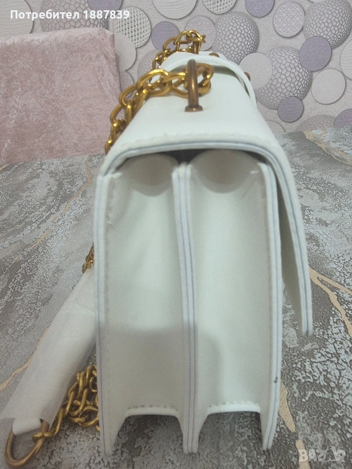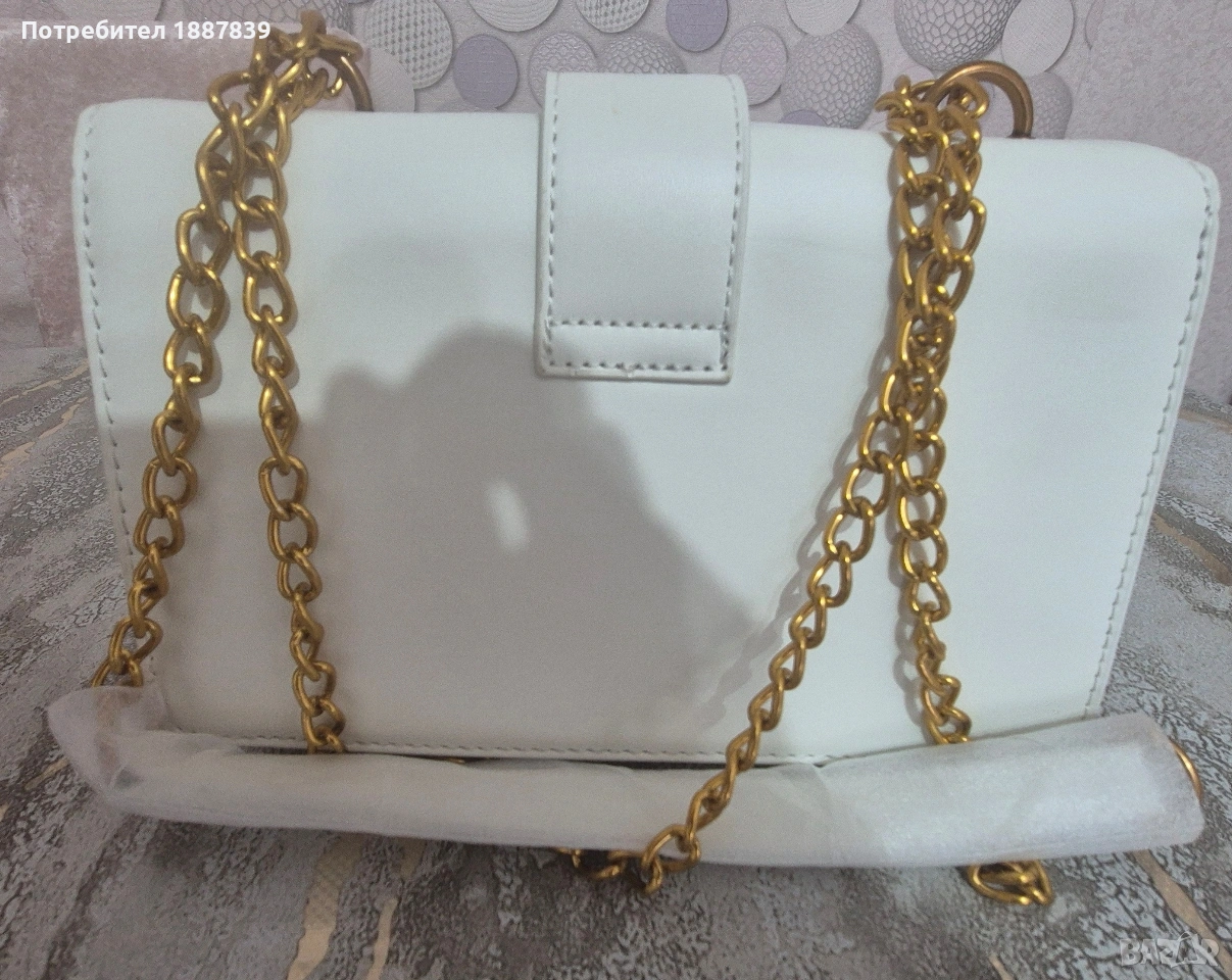 Бяла чантичка аналог на 100% Pinko,размери:Ш24см.В15,Д8см.