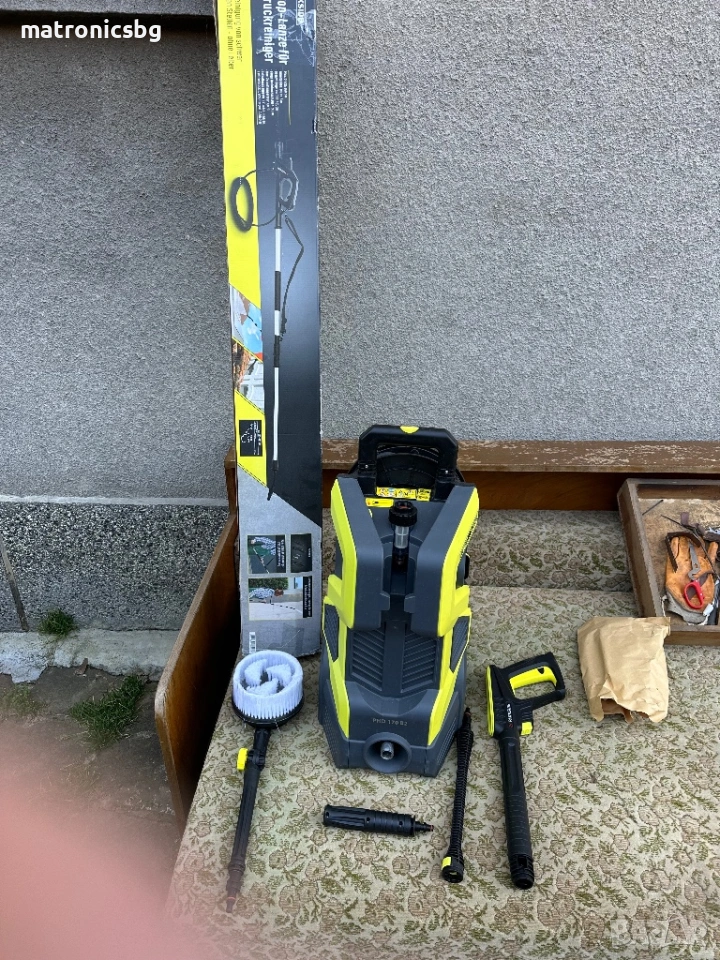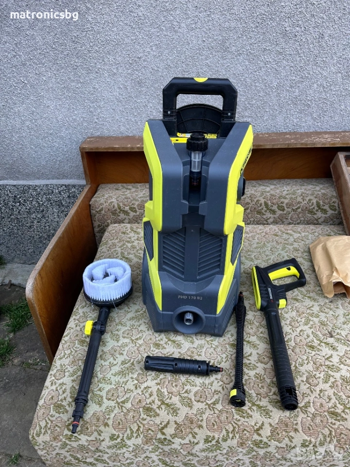 Много малко използвана водоструйка и телескопична пръчка Parkside PHD 170 B2. Устройството е в добро състояние и включва всички необходими аксесоари. Подходящ за почистване на дома и автомобила.