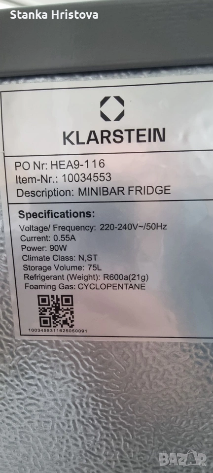Продавам Работещ Чисто нов хладилник сив Klastein 75L. Идеален за вашата кухня, каравана , бунгала и др. Висок клас НЕМСКА марка. Внос от Германия.
