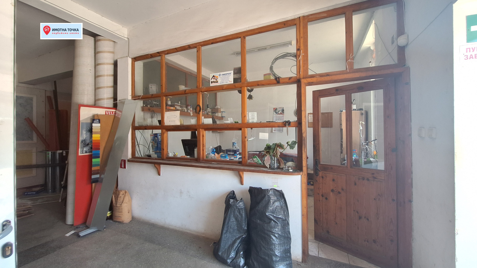Помещение/Магазин с добра локация и лесен достъп. Помещението е с площ 300кв.м. с обособен офис + санитарни помещения, съблекални, склад, два входа, рампа, климатик. Подходящо за различни търговски и складови дейности, офис и други. Предлага се и съседното помещение с площ 200кв.м. Бонус прилежащ двор.