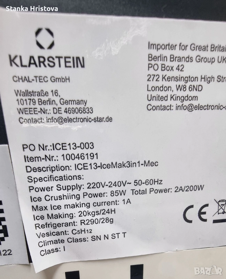 Ледогенератор Klastein 3в1 200w., снимка 1 - Други - 53862071 Ледогенератор Klastein 3в1 200w., снимка 2 - Други - 53862071 Ледогенератор Klastein 3в1 200w., снимка 3 - Други - 53862071 Ледогенератор Klastein 3в1 200w., снимка 4 - Други - 53862071 Ледогенератор Klastein 3в1 200w., снимка 5 - Други - 53862071 Ледогенератор Klastein 3в1 200w., снимка 6 - Други - 53862071 Ледогенератор Klastein 3в1 200w., снимка 7 - Други - 53862071 Ледогенератор Klastein 3в1 200w., снимка 8 - Други - 53862071 Ледогенератор Klastein 3в1 200w., снимка 9 - Други - 53862071 1/9