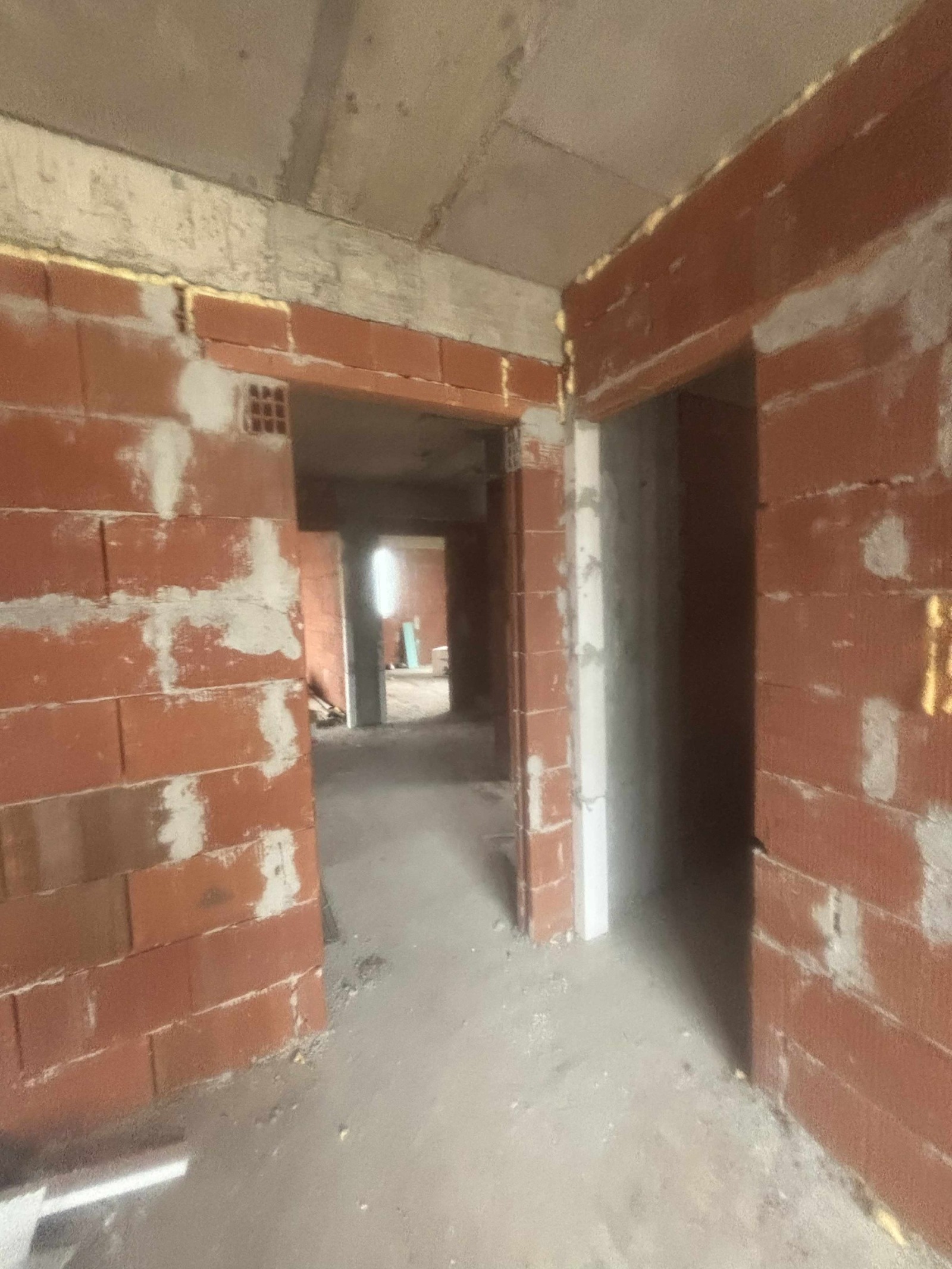 - Стени на тухла - неизмазани;