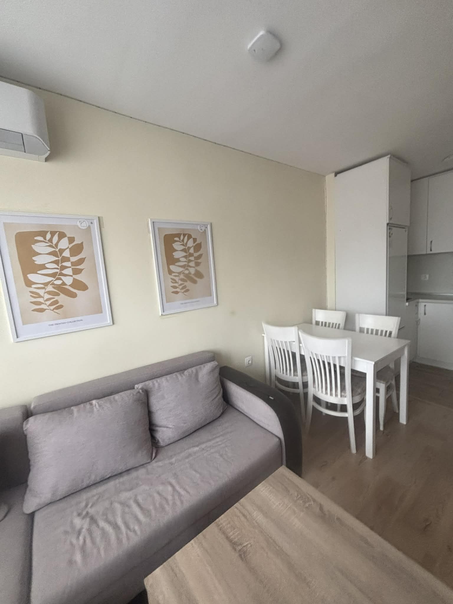 Имот Инвест предлага на вашето внимание прекрасен, двустаен апартамент в ЦГЧ на Благоевград, в нова сграда с АКТ 16. Състои се от кух. бокс с дневна, спалня, тераса, сан. възел. мокро помещение. Напълно обзаведен със съвсем нови мебели и уреди. Намира се близо до трето училище, АУБ, хотел Ален мак. Свободна зона за паркиране!