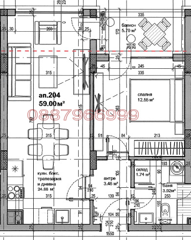 Двустаен апартамент с обща площ 70.35 кв.м, находящ се в новострояща жилищна сграда на ул. Одрин в гр. София. Разпределение: входно антре, баня с тоалетна, спланя, двевна с кухня и тераса. Изложение запад, към вътрешен двор. Към апартамента има подземно паркомясто на цена 38 000 евро. Сградата има акт 14, очакван срок за въвеждане в експлоатация: 01.2027 г.