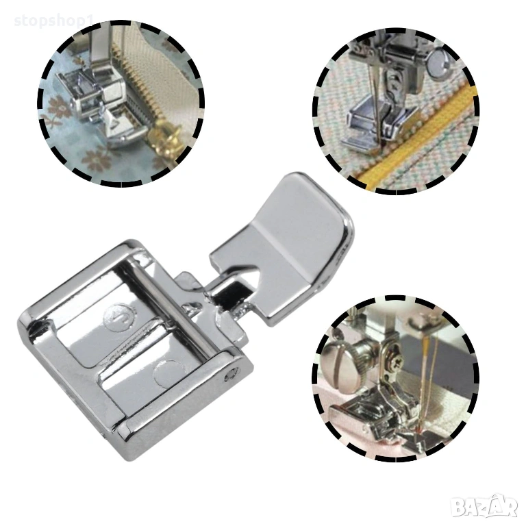 - Лесна употреба: Просто закрепете притискащото краче за цип към скобата на машината, за да можете да използвате и сменяте всяко притискащо краче без да използвате отвертка.