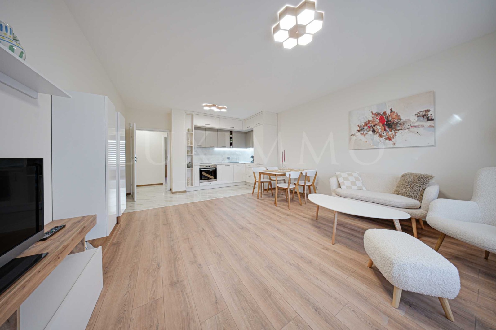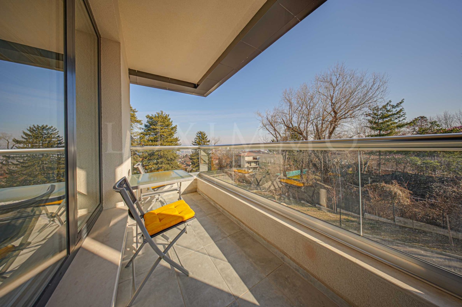 Жилището е със западно изложение, което осигурява естествена светлина през деня и красиви гледки към Витоша или столицата.