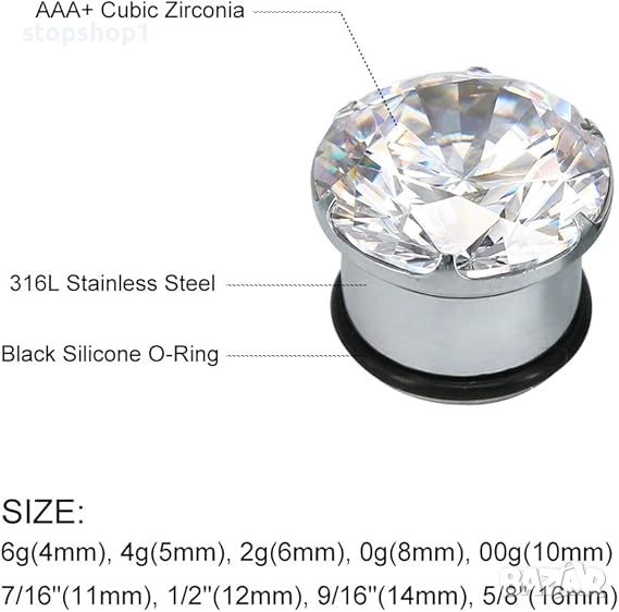 Пиърсинг на ухо от стомана с цирконии AAA+ 316L → Обява 53862825