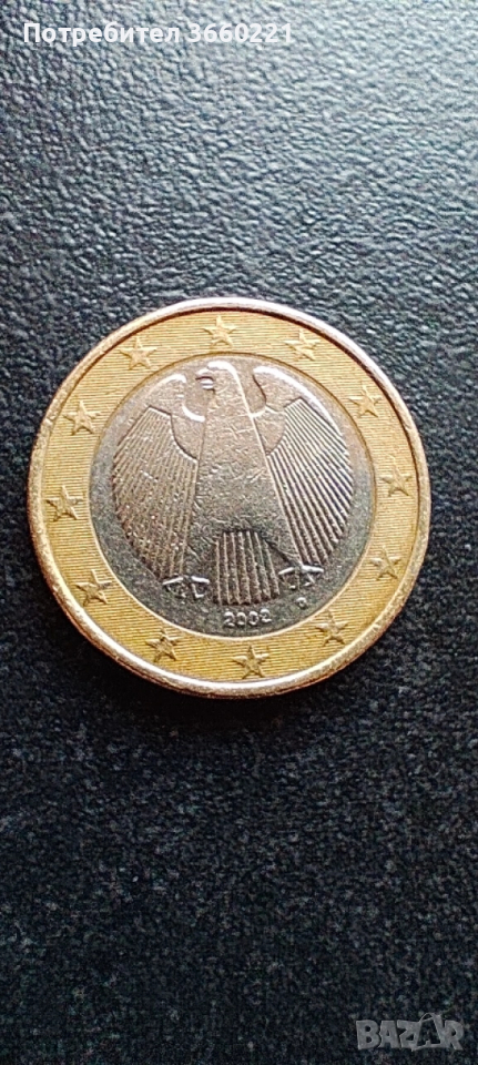 Монета от 1 евро, Германия, 2002 г → Обява 53862887