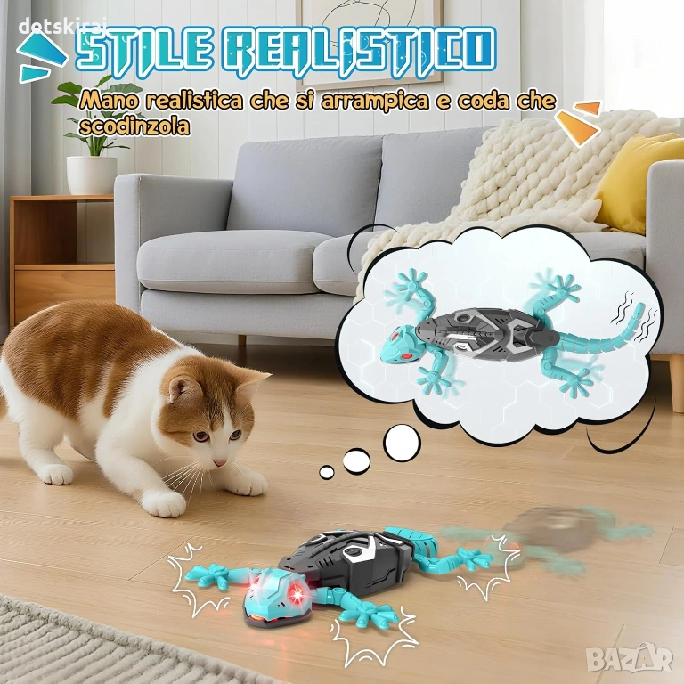 Играчката е оборудвана с ярки LED очи, които светят в червено и придават още по-реалистичен и атрактивен вид. Динамичните крайници и бионичният дизайн пресъздават движенията на истински гекон, което прави играта още по-забавна и интересна за децата.