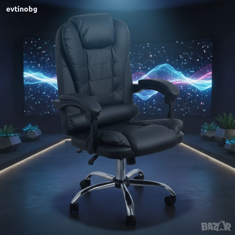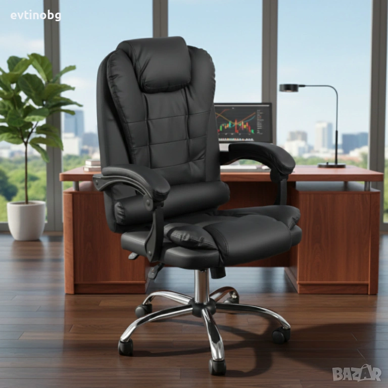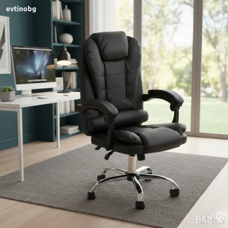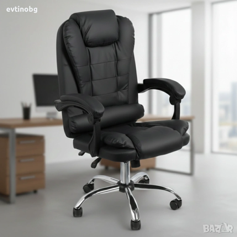 Ергономичен офис стол с лумбална опора от еко кожа в черен цвят – комфорт за дълги часове без болки