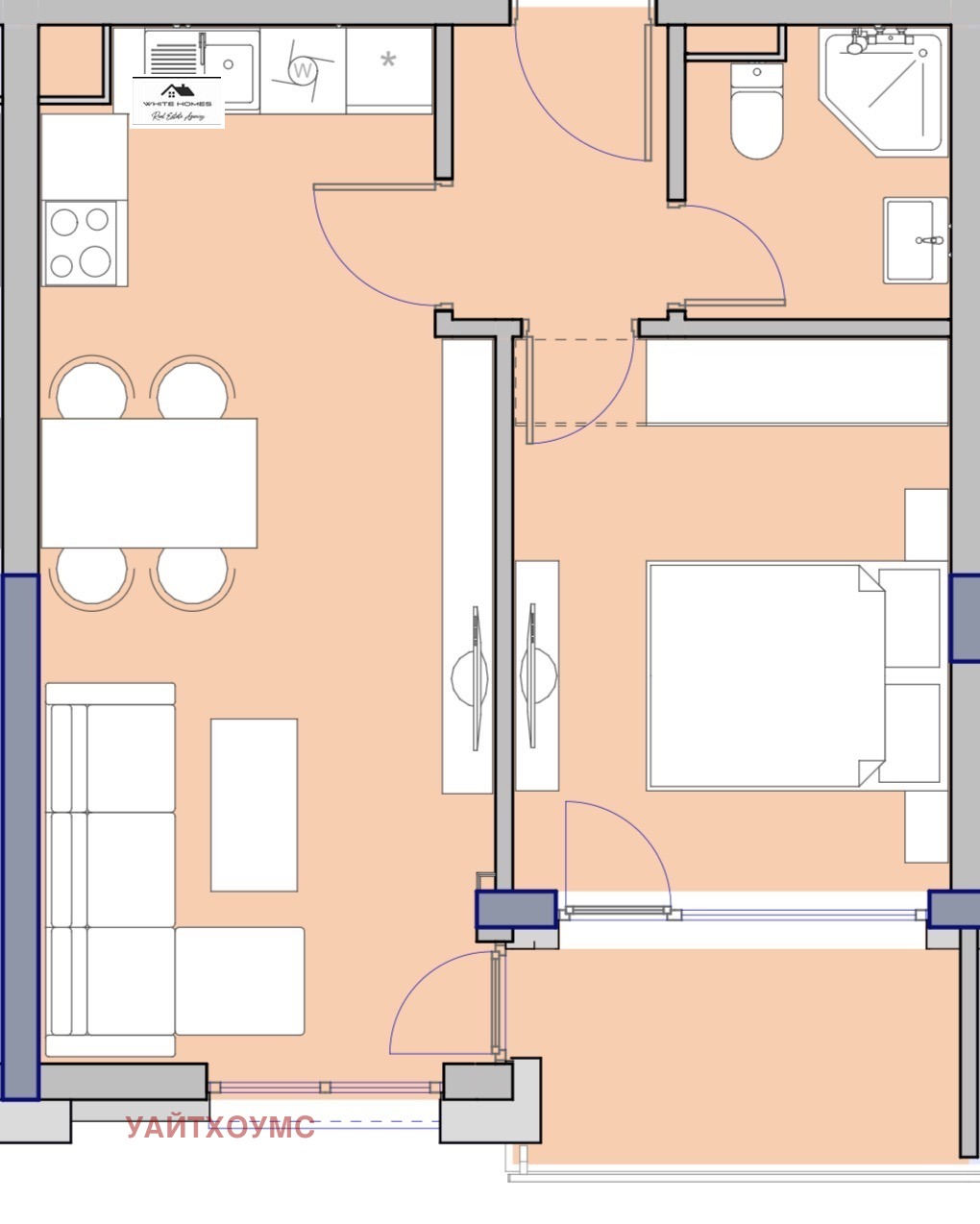 - Просторна дневна с кухненски бокс