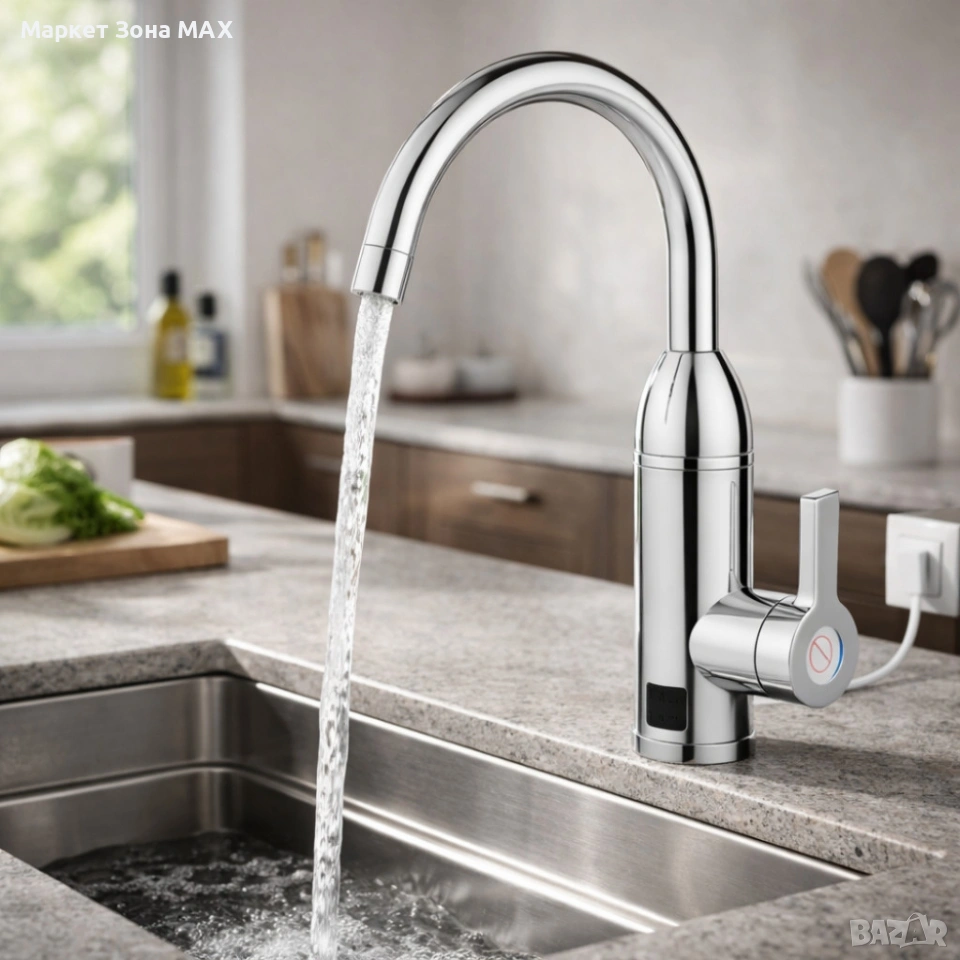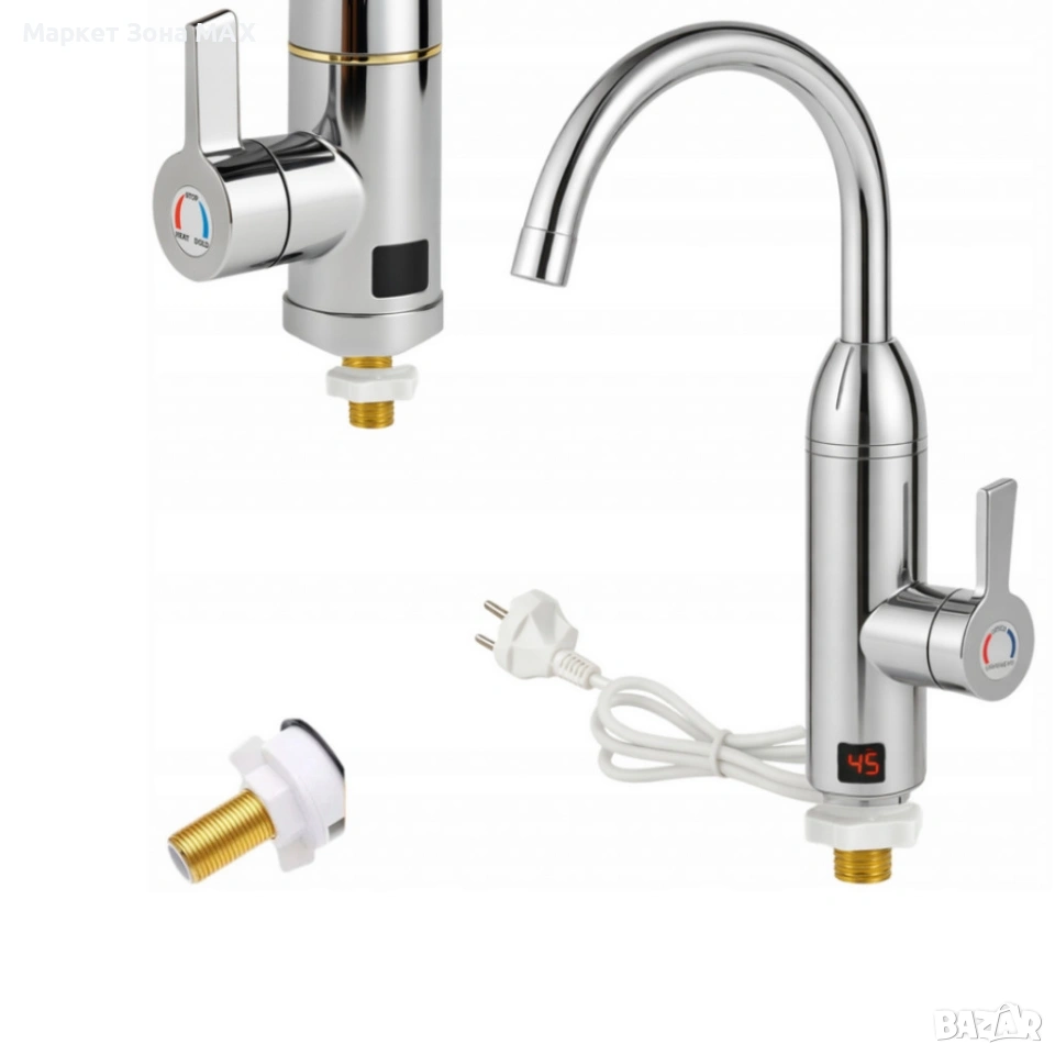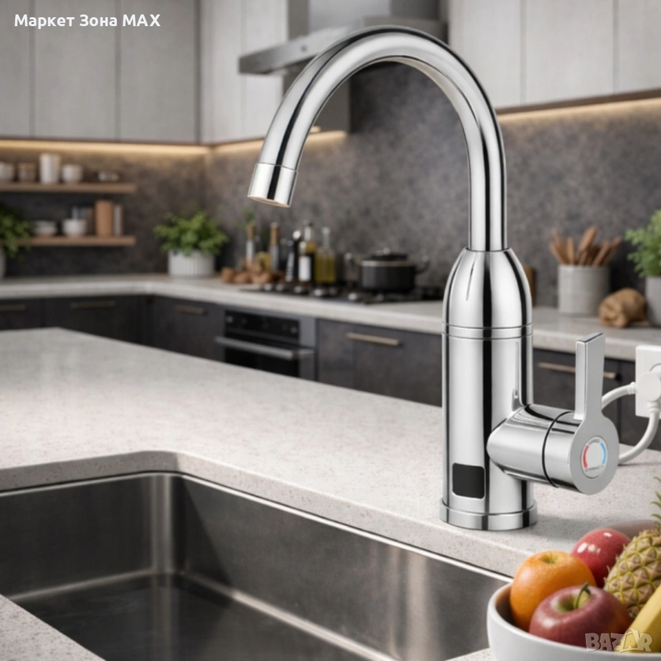 Електрически хромиран смесител с моментално загряване на водата и LCD екран - винаги топла вода