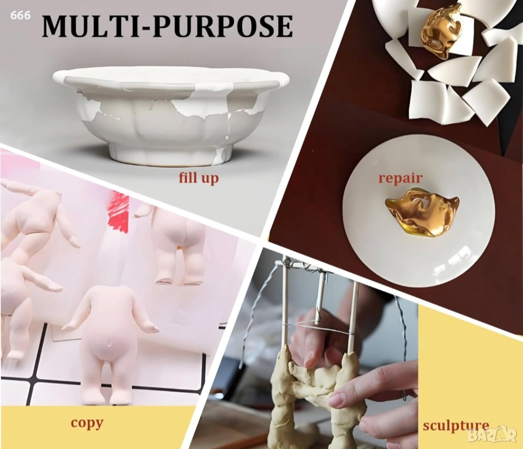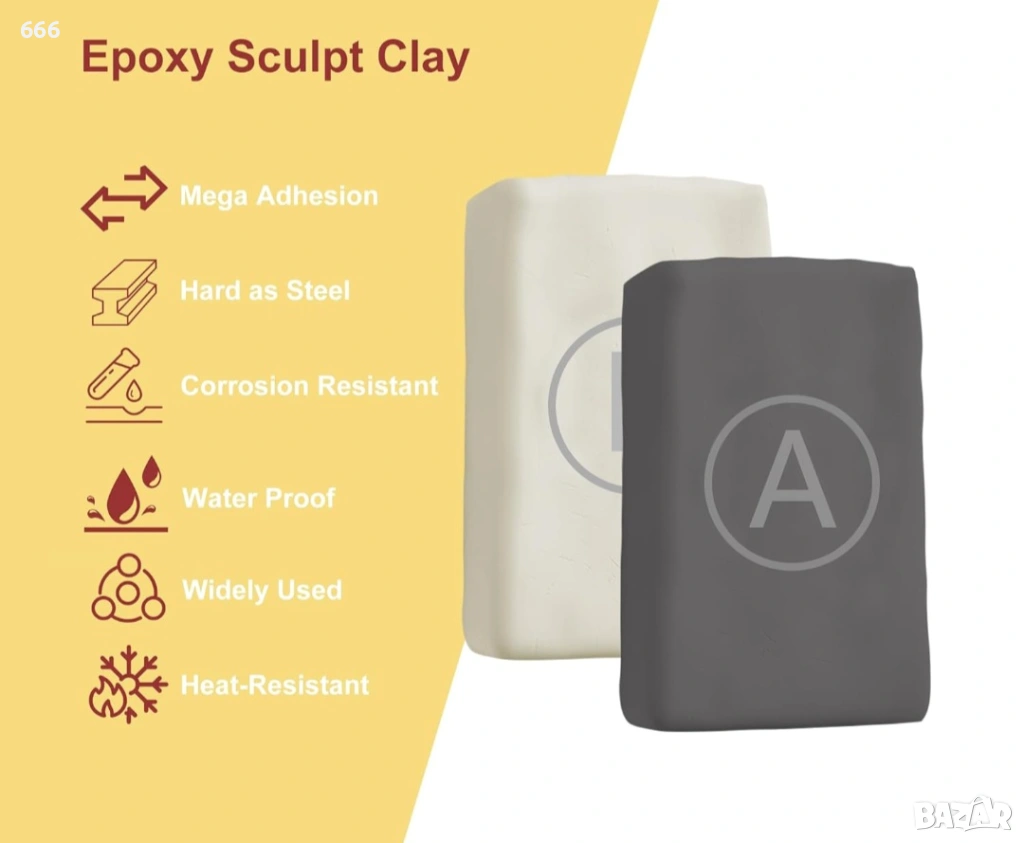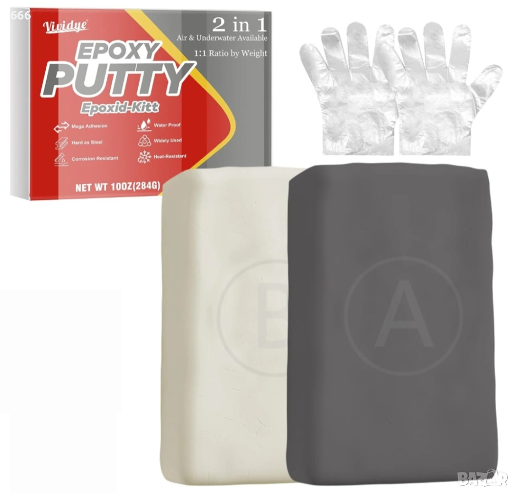 Лесна употреба: Просто смесете равни части от епоксидната скулптурна глина до получаване на хомогенна смес и нанесете върху чисти повърхности. С бързо първоначално втвърдяване от 45 минути и пълно втвърдяване за 24 часа, ремонтите могат да бъдат извършени ефикасно и безпроблемно.