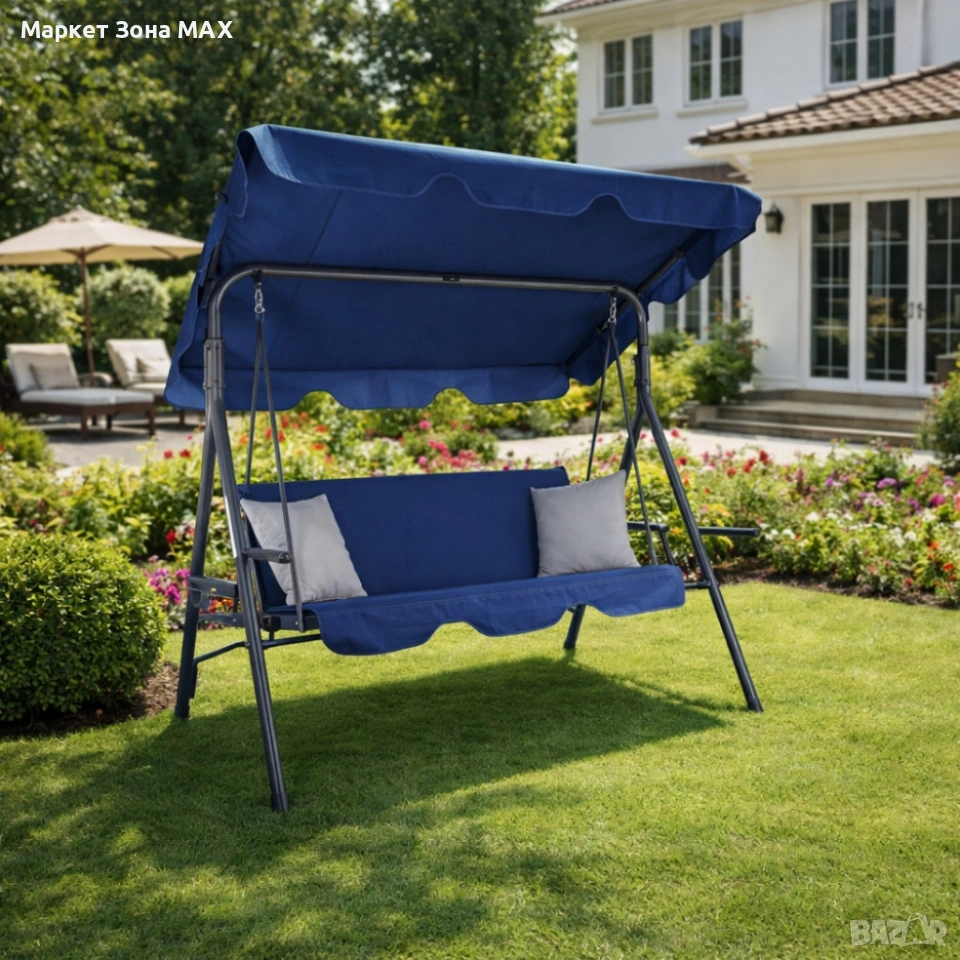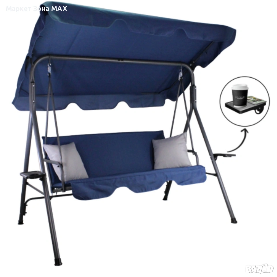 Градинска люлка A-Type със сиви възглавници и поставки за чаши - елегантност и комфорт → Обява 53863218