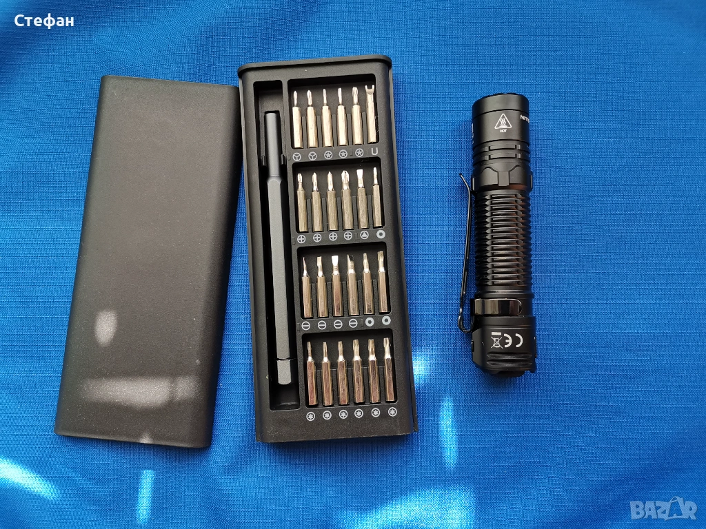 При покупка на повече от един нож давам подарък комплект отвертка с накрайници, също чисто нов.