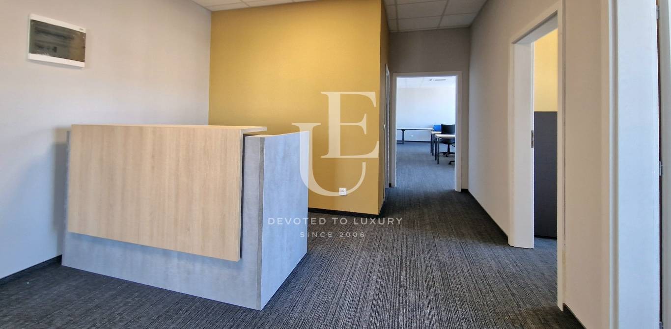 Unique Estates представя на Вашето внимание отличен нов, напълно обзаведен офис под наем.