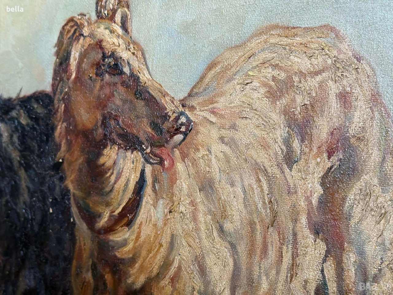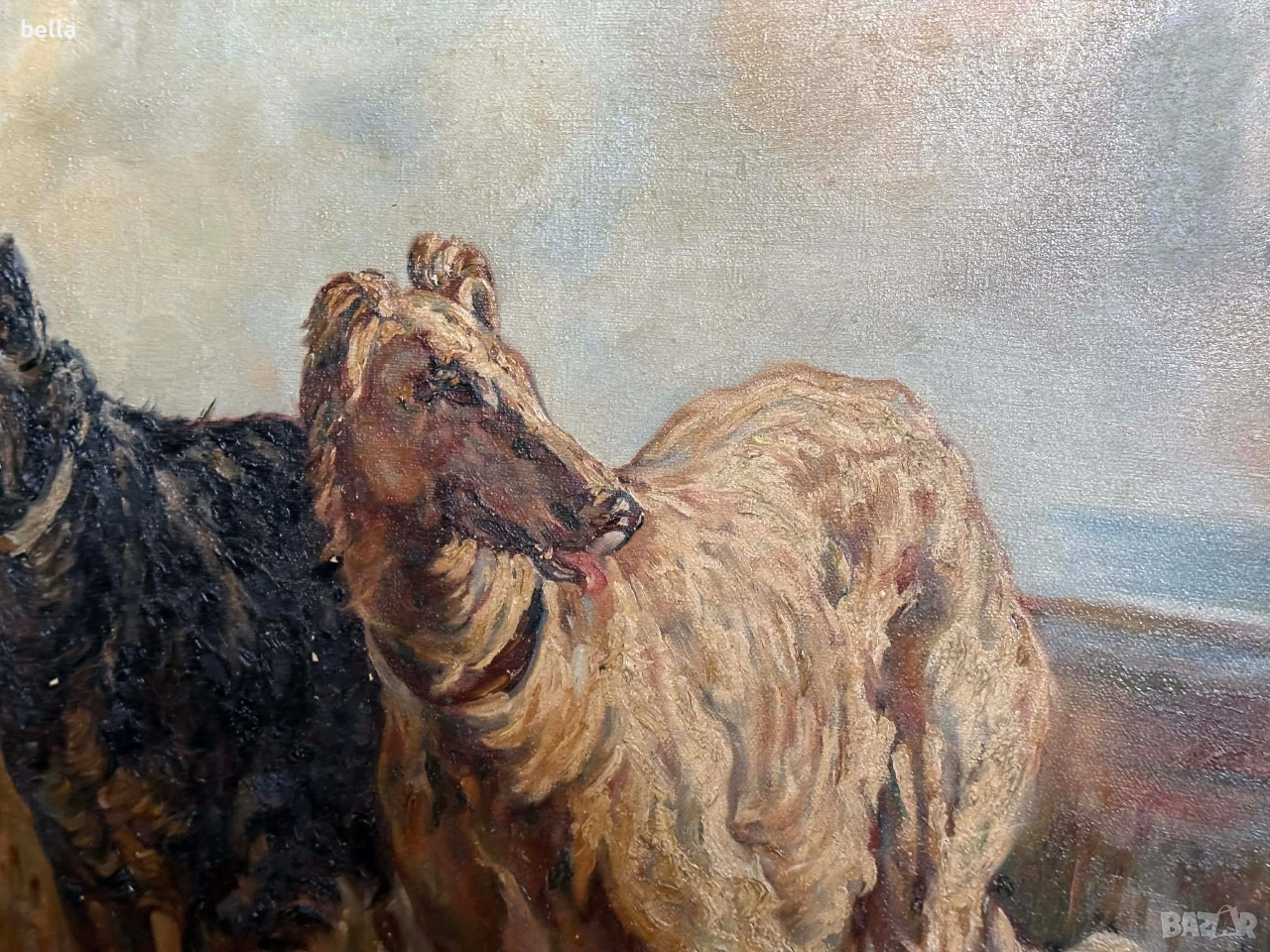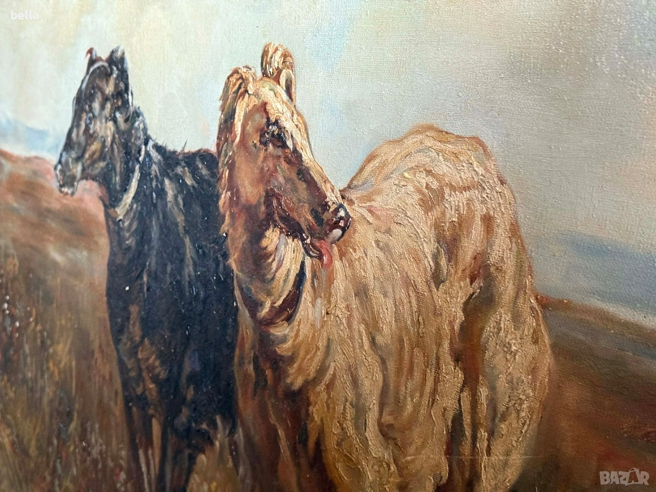 Старинно маслено платно "Руски борзои" – Музеен размер (140х110 см) → Обява 53863532