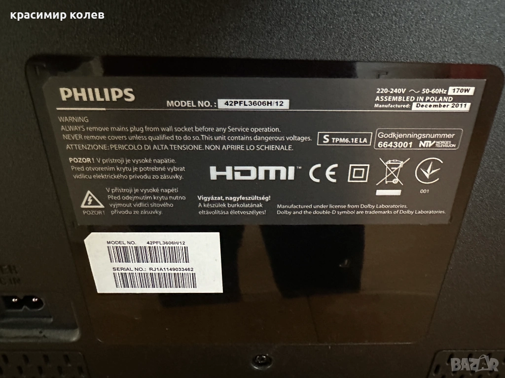 телевизор "PHILIPS 42PFL3606H/12"/42 инча/