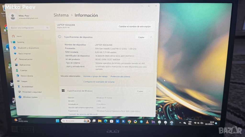 Модел: Acer Aspire 3 (A315-59)