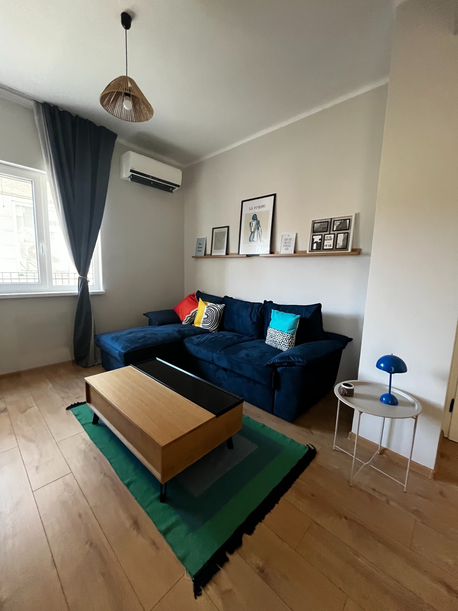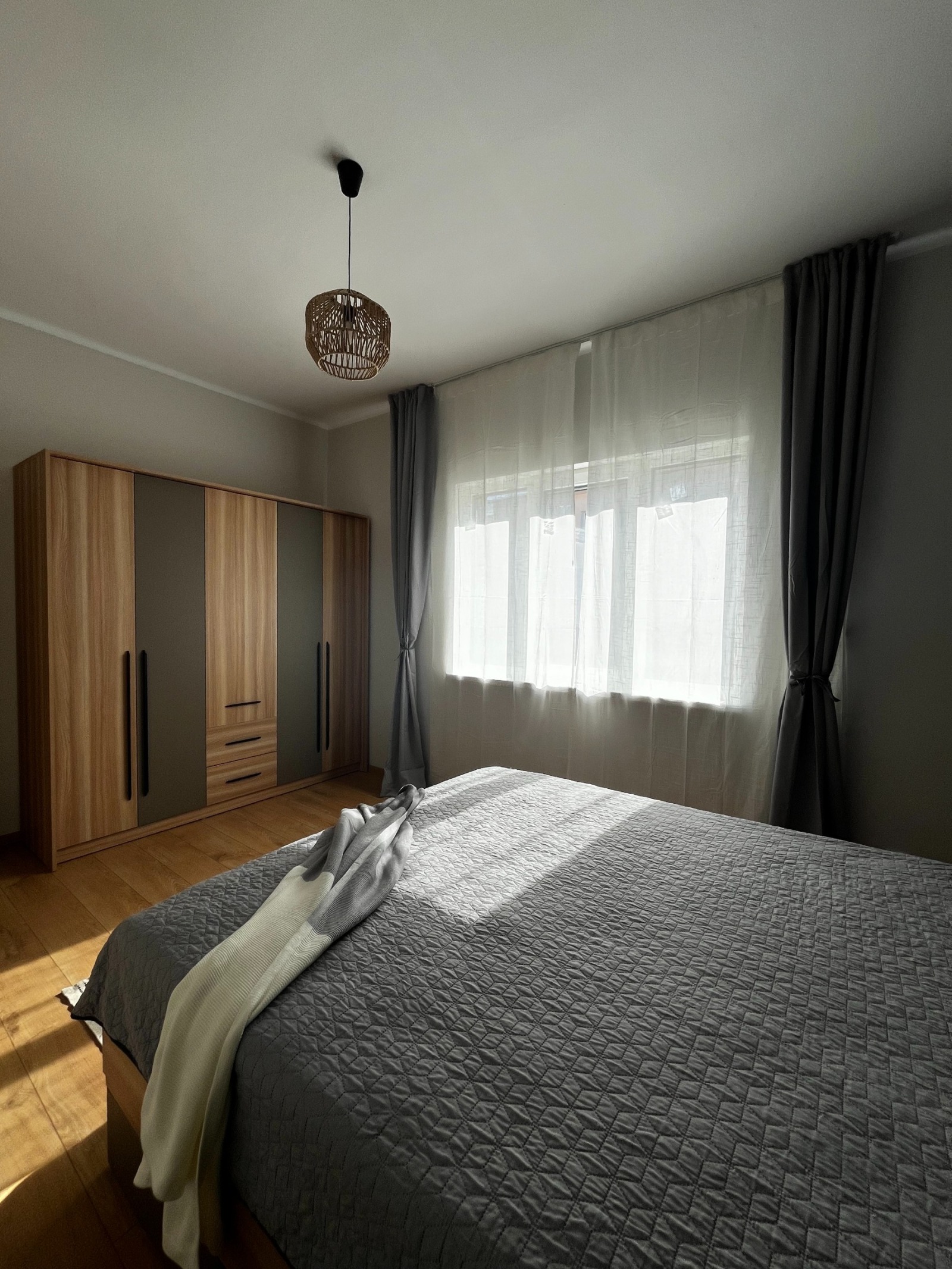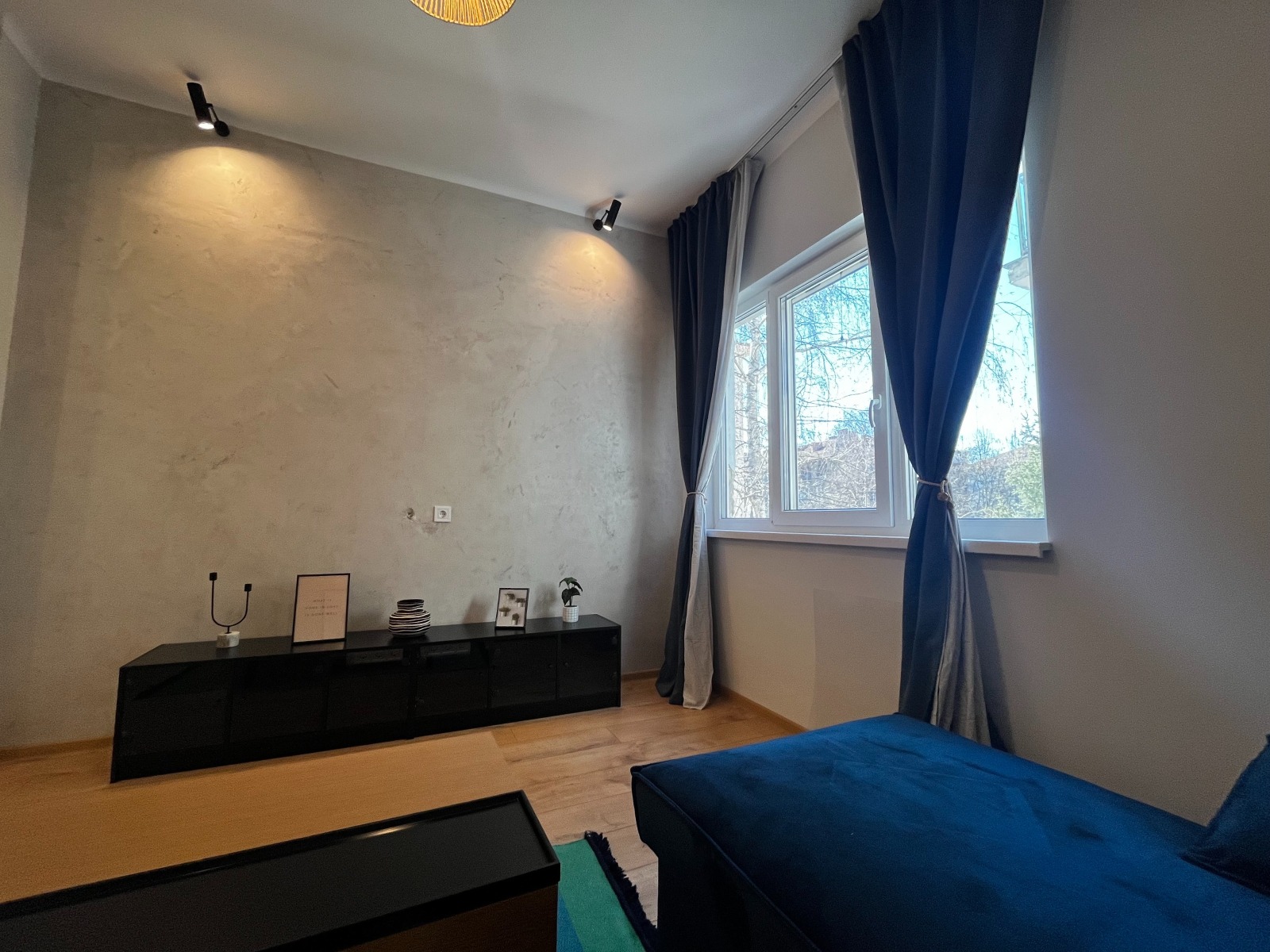 Жилището съчетава модерно интериорно решение с очарованието на класическа централна сграда. Апартаментът впечатлява с високи тавани - 3.05м, естествена светлина и внимателно подбран интериор с качествени материали и стилно обзавеждане.