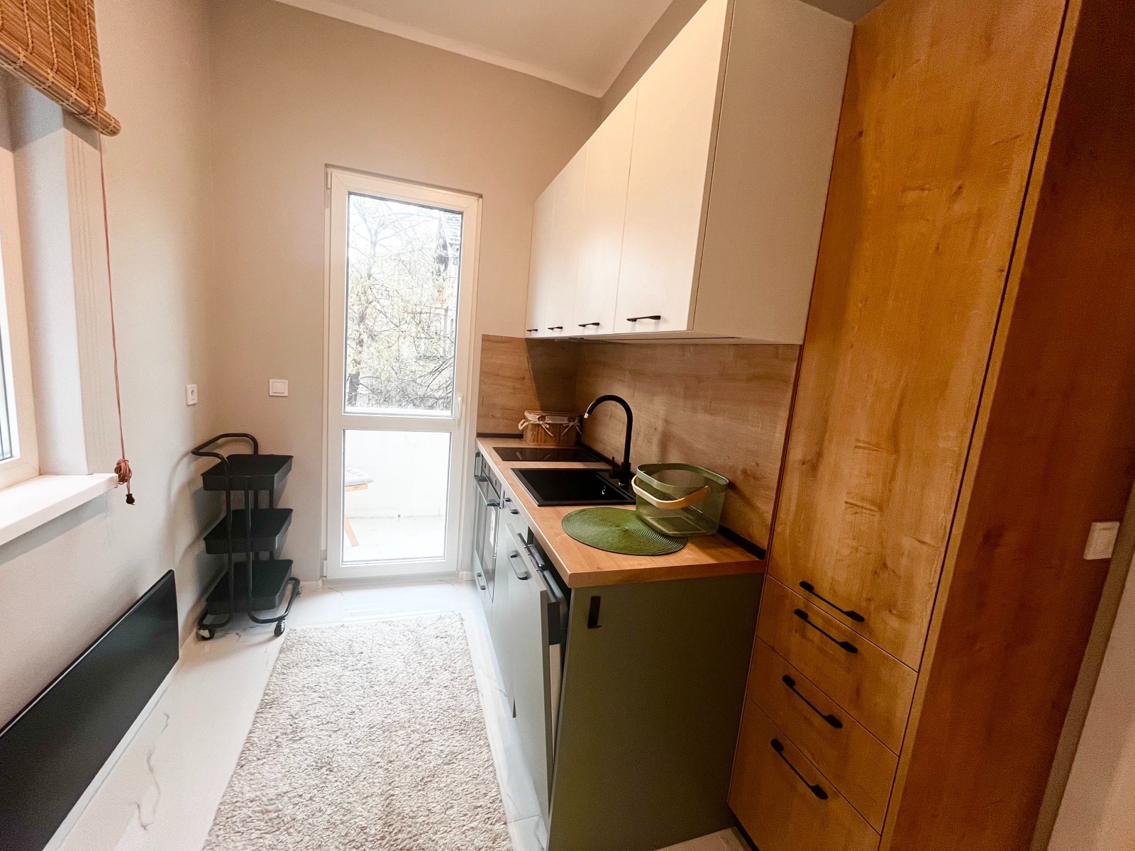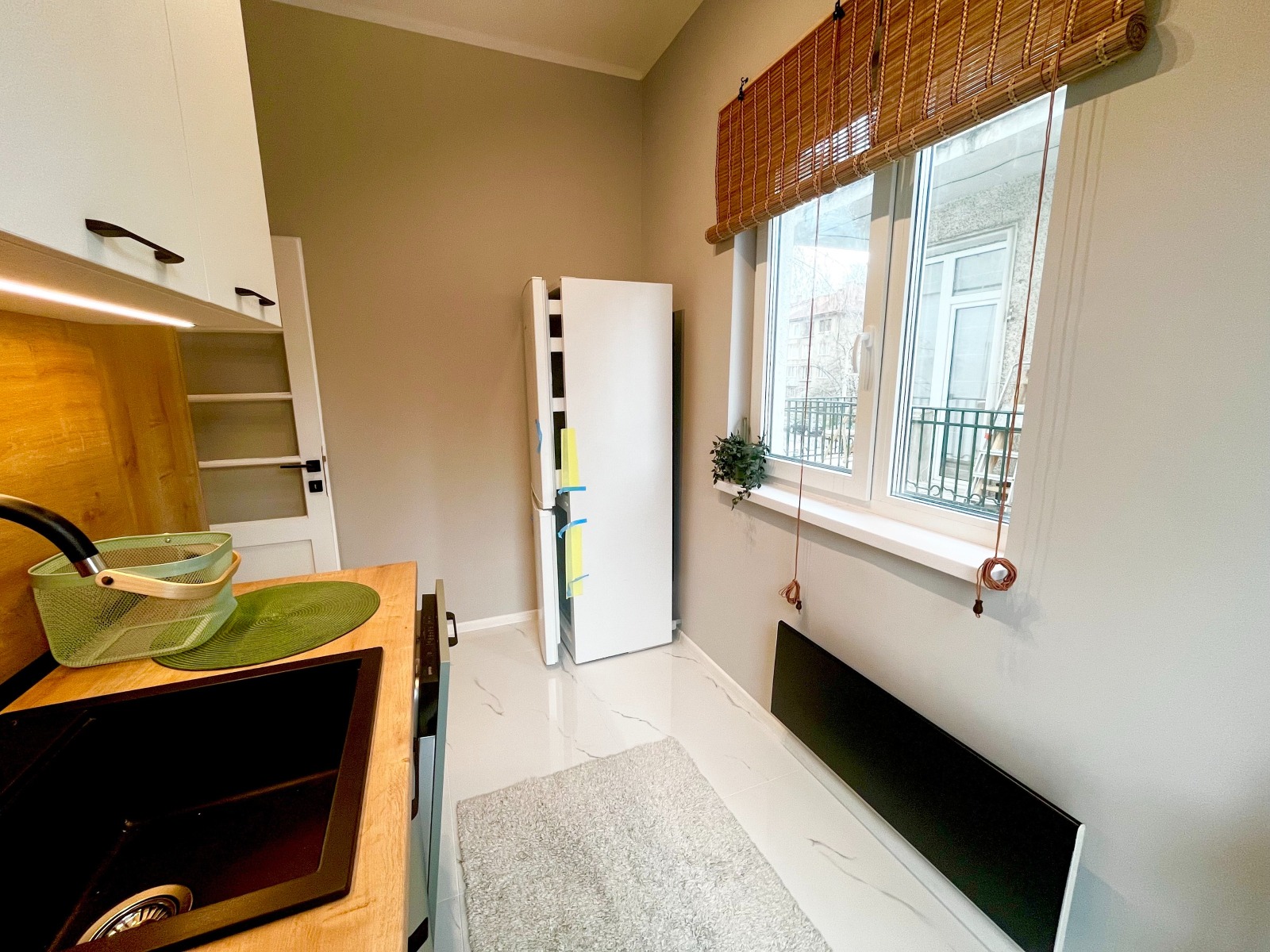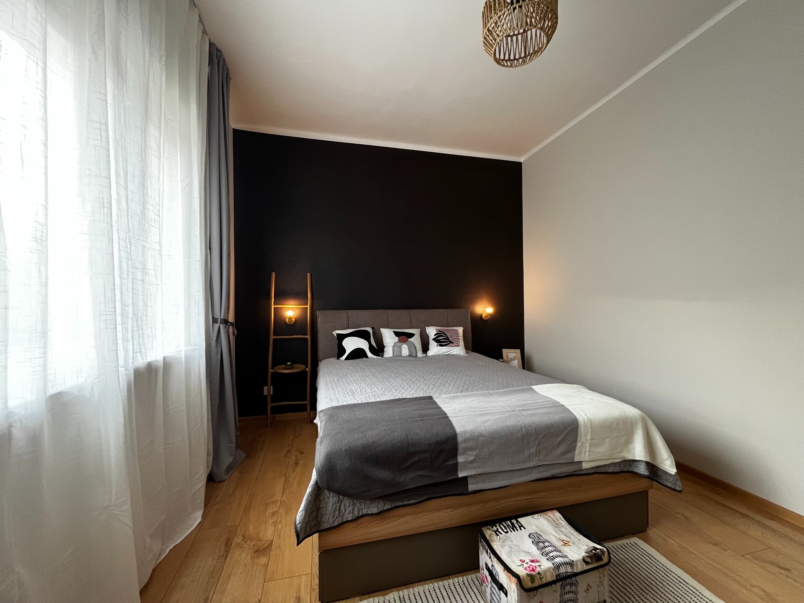 Жилището съчетава модерно интериорно решение с очарованието на класическа централна сграда. Апартаментът впечатлява с високи тавани - 3.05м, естествена светлина и внимателно подбран интериор с качествени материали и стилно обзавеждане.