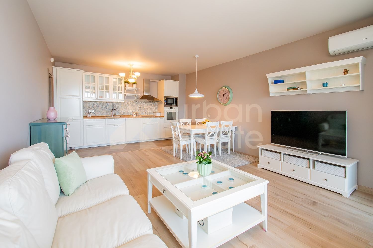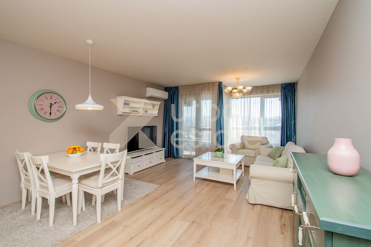 Urban Estate представя на Вашето внимание изключително светъл, стилно завършен и напълно обзаведен тристаен апартамент под наем.