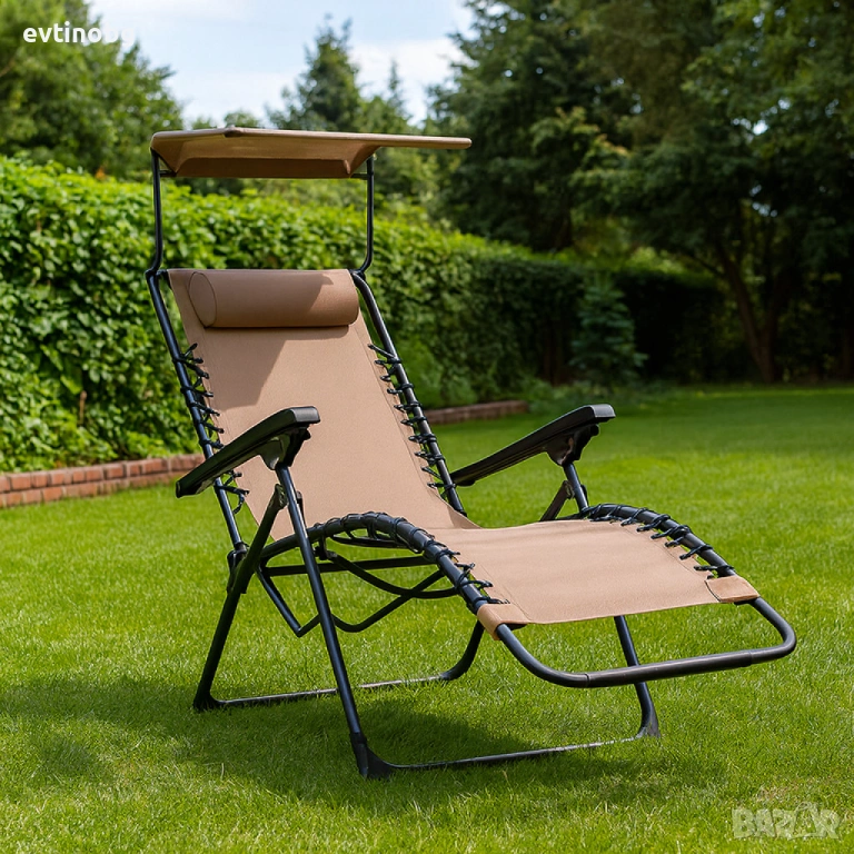 Сгъваем градински шезлонг с нулева гравитация и сенник – комфорт за пълна релаксация → Обява 53863839