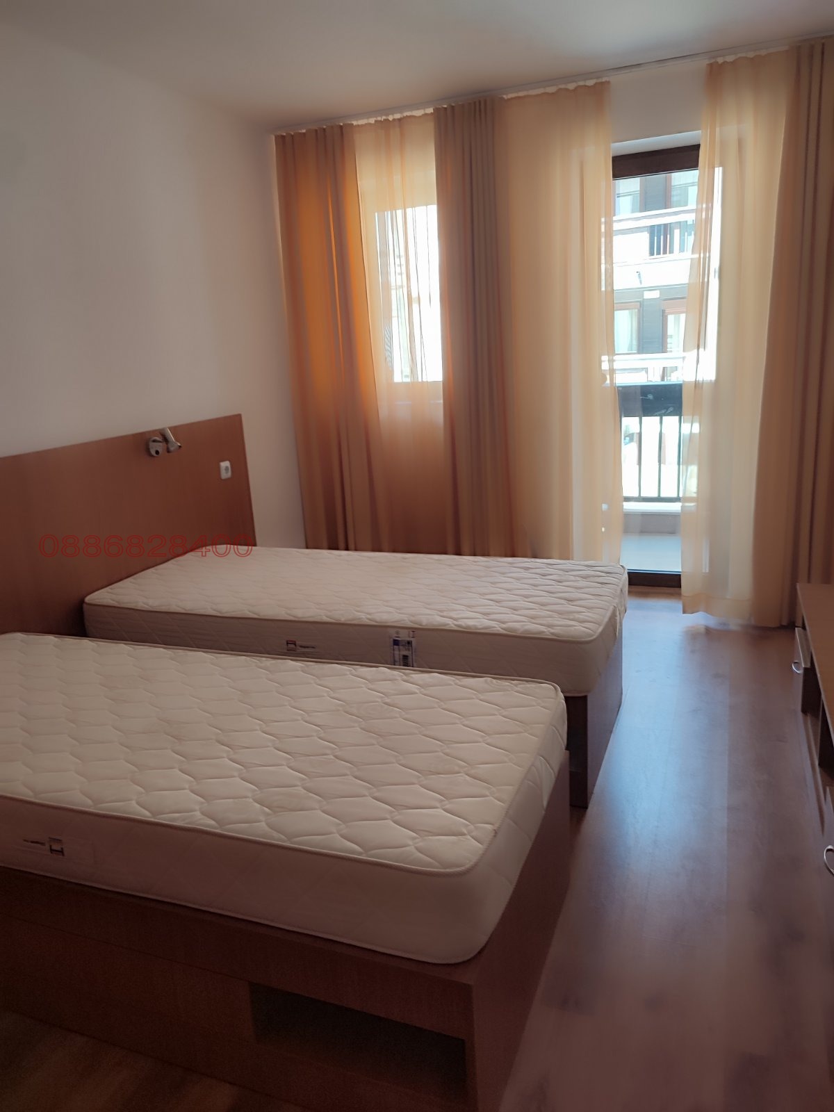 Спалня две отделни легла, които могат да се съединят и да се ползват и като спалня, нощни шкафчета, нощни лампи, два двукрилни гардероби с надстройки, тв секция и портманта;