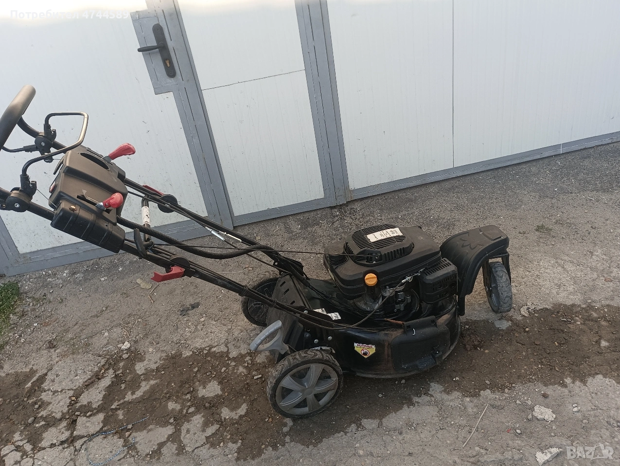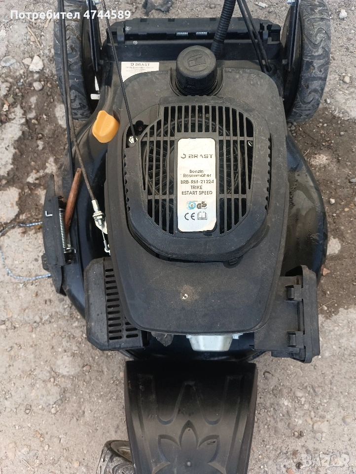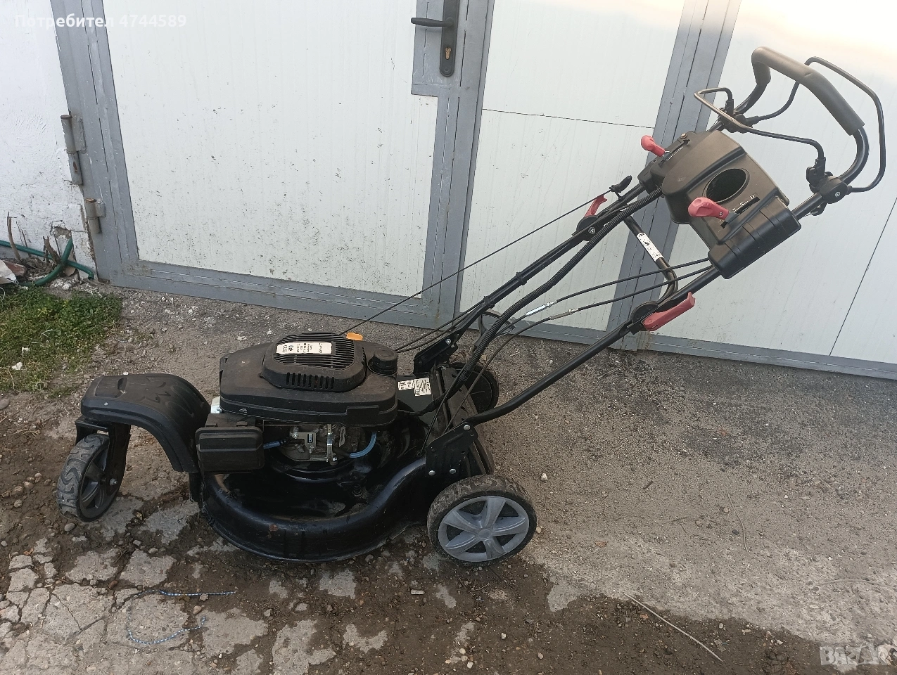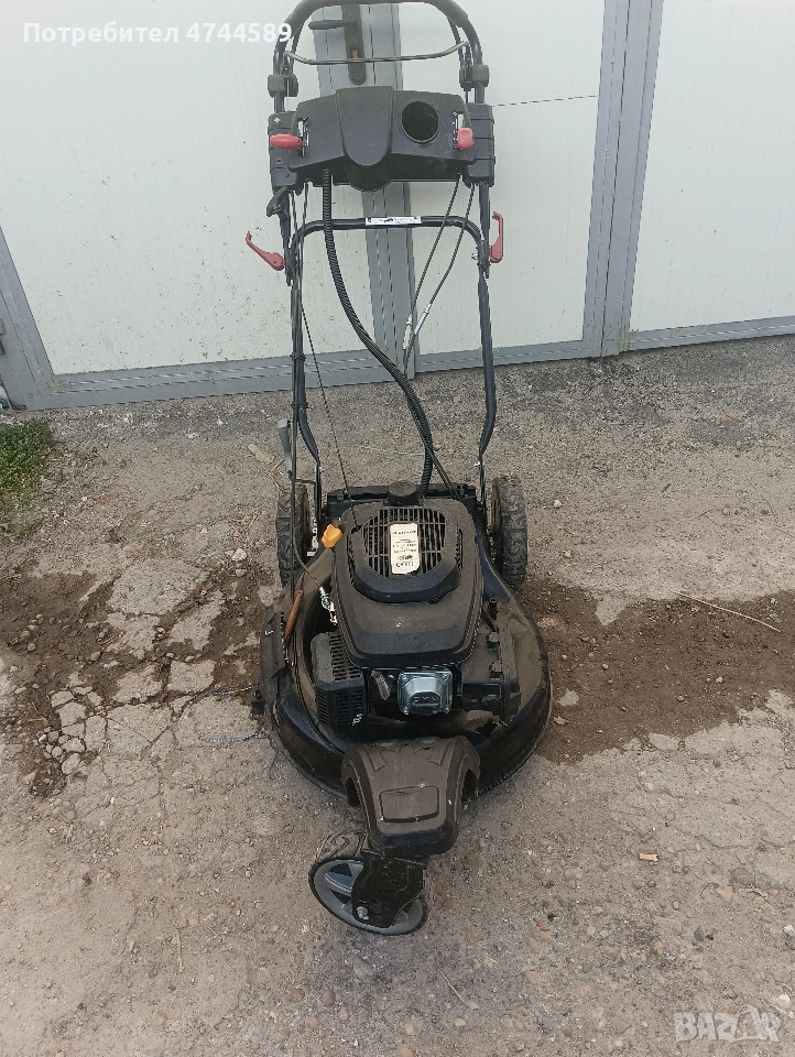 косачката е с мощен мотор. има и стартер но палене с батерия. Има и 3 скорости на самохода. Има и странично изхвърляне.