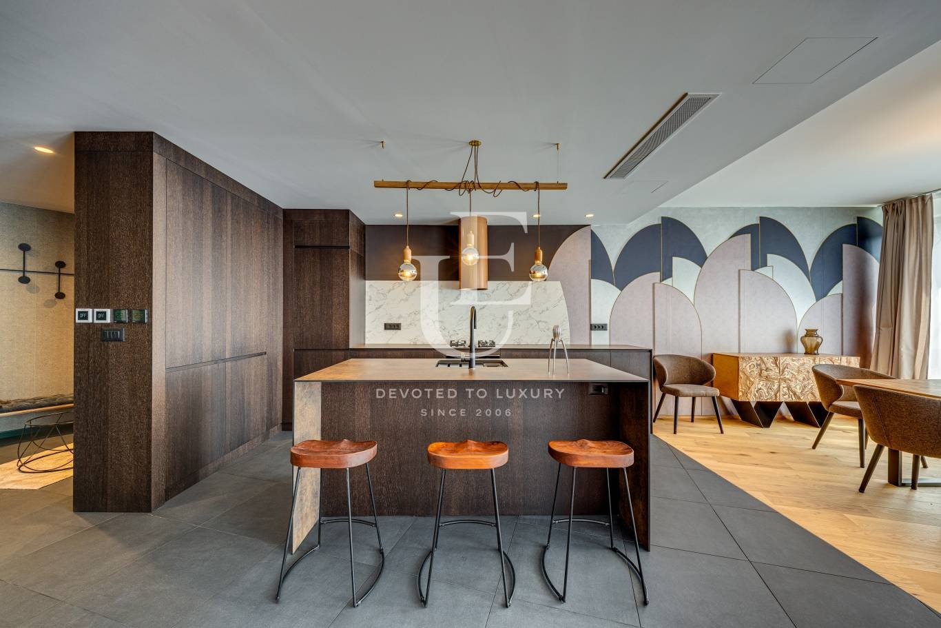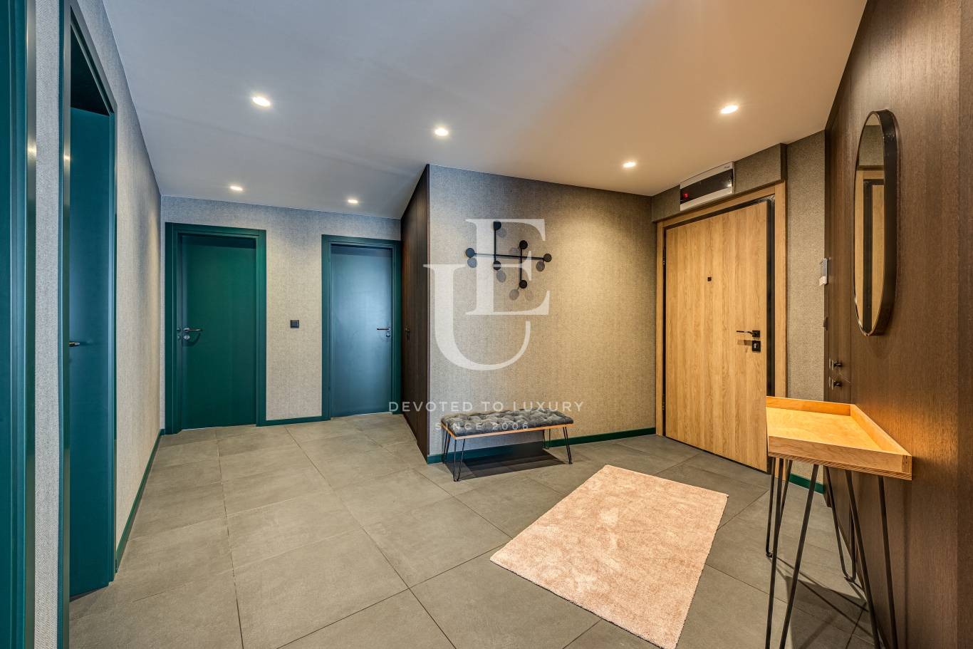 Апартаментът е проектиран по индивидуален дизайнерски проект и впечатлява с изчистена естетика, съвременни решения и безкомпромисно качество на материалите. Интериорът съчетава стил и уют по начин, който отговаря на най-високите изисквания за комфорт. Пространството е светло и функционално, ориентирано към вътрешен двор, което осигурява спокойствие и уединение. Апартаментът разполага с красива тераса - идеално място за отдих или време със семейството.