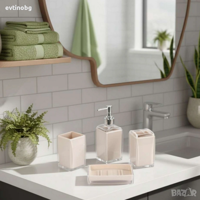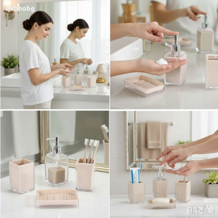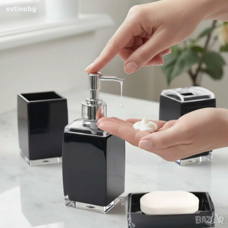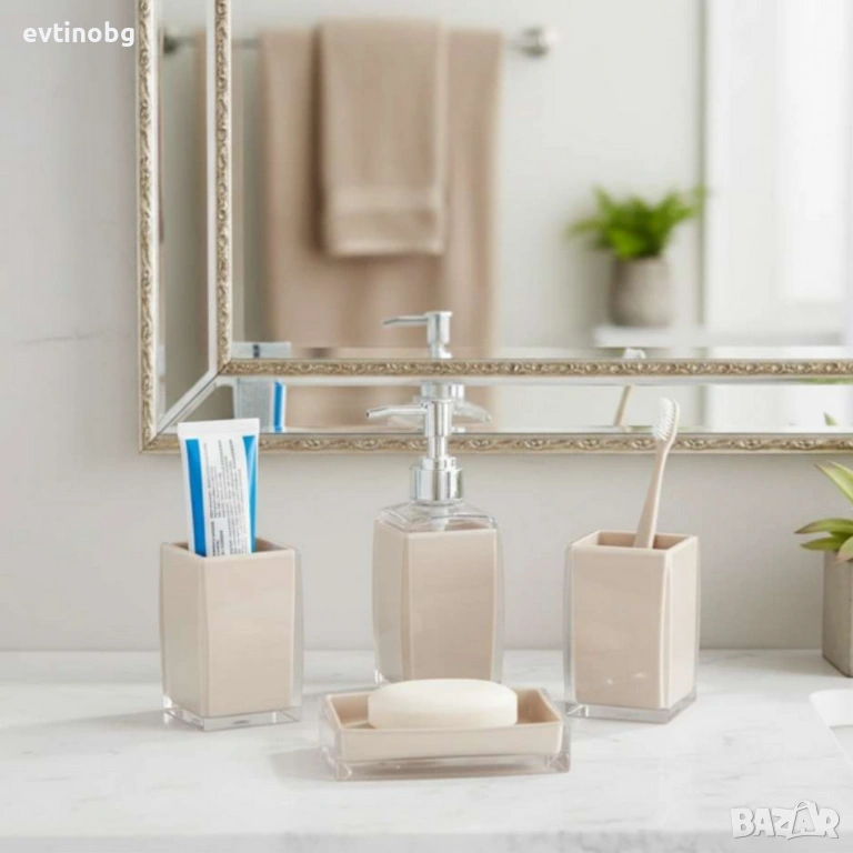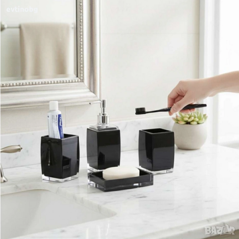 Комплект: 4 части – дозатор, чаша за четки, сапунена чиния, органайзер;
