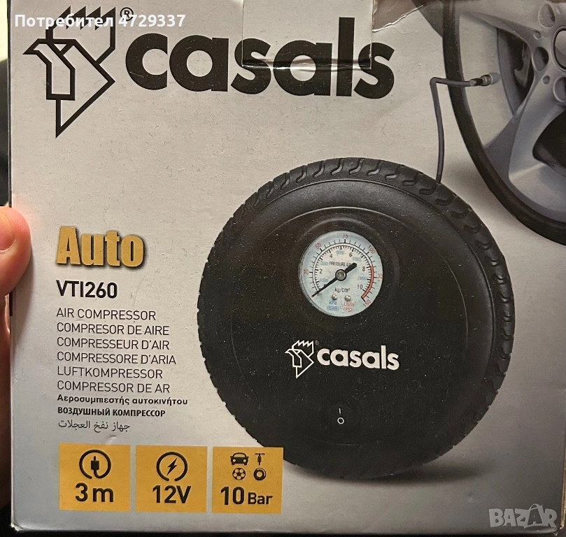 Компактен автокомпресор Casals VTI260 – 12V / 10 Bar (Чисто нов) → Обява 53864567