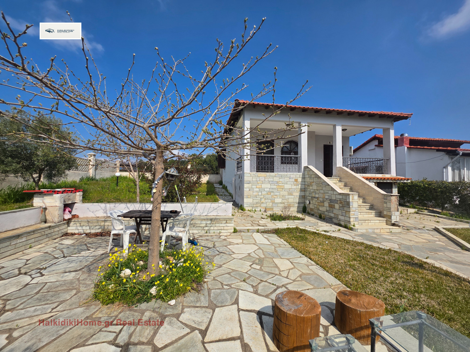 Неа Потидея #Халкидики за продажба самостоятелна къща с обща площ от 65 кв.м. върху ограден парцел от 600 кв.м.