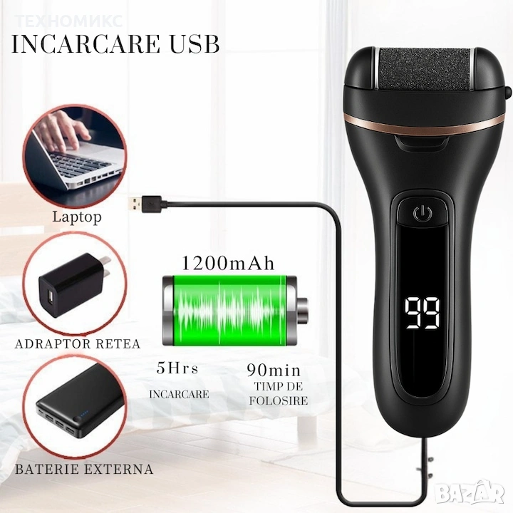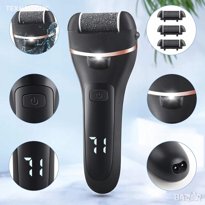 Електрическа пила за крака, с 3 ролкови глави, премахване на мазоли