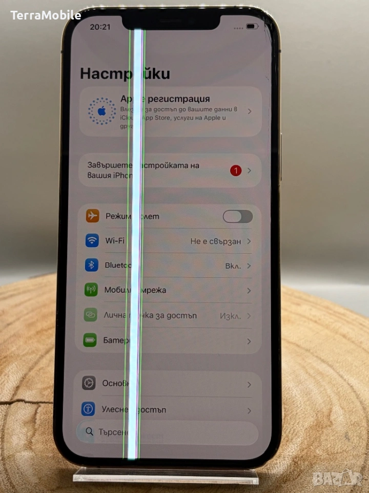 • Дисплей: Счупен в единия ъгъл с тънка зелена вертикална черта през средата. Въпреки това, тъчскрийнът работи безупречно по цялата си площ.