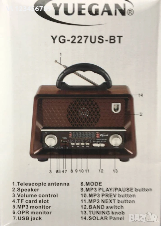 Ретро радио AM/FM/ SW - YUEGAN YG 226 BT