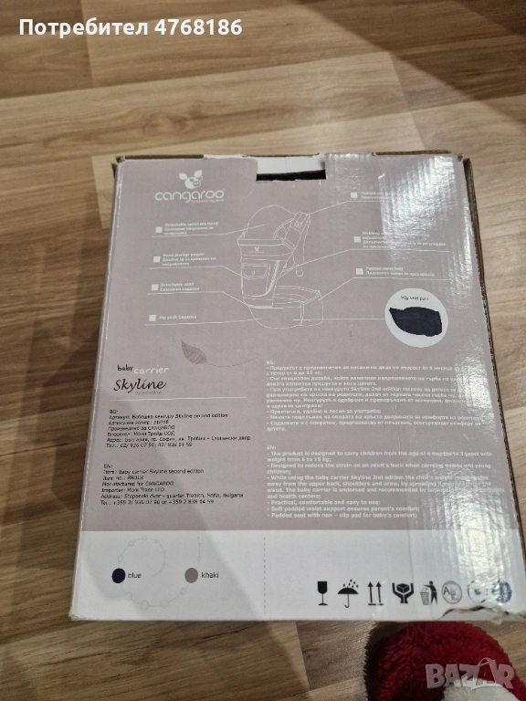 Чисто нова, само изпробвана, без забележки. Много удобна и практична, с ергономичен дизайн, който осигурява правилна позиция на бебето. Регулируеми презрамки за по-голям комфорт на родителя.