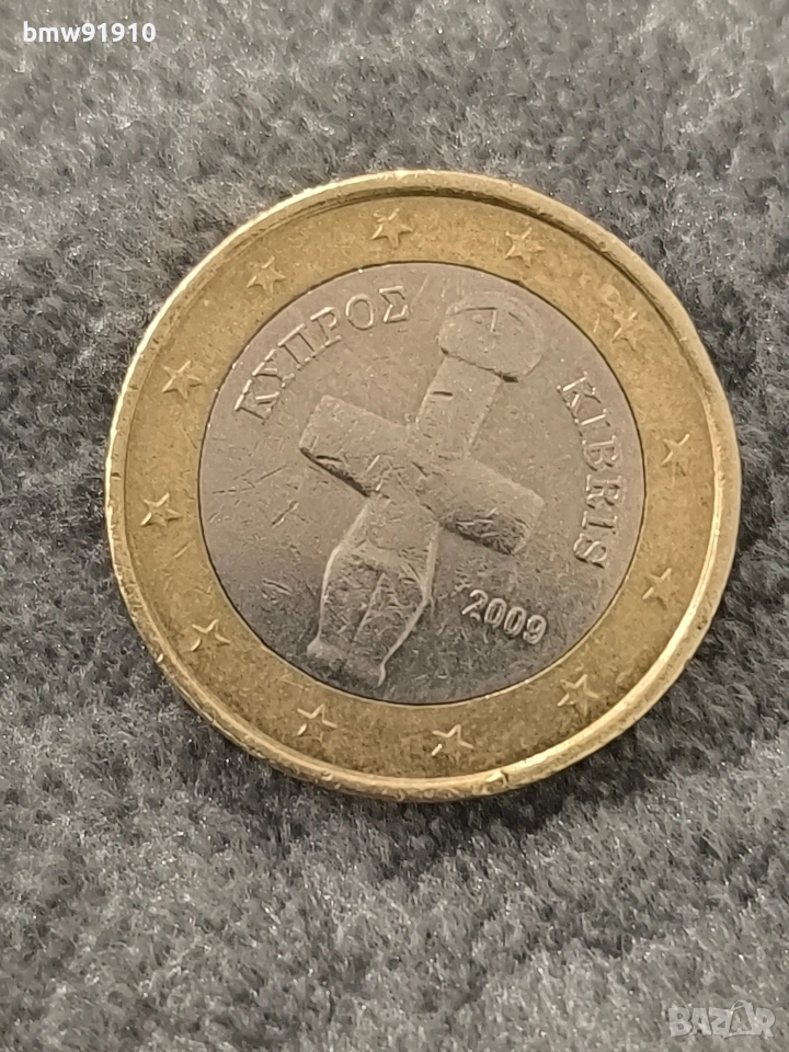 Това е монета от 1 евро от Кипър, издадена през 2009 г., която се счита за колекционерски предмет. Дизайн: Изобразява "Идола от Помос", кръстовидна скулптура от епохата на халколита (около 3000 г. пр.н.е.), символизираща праисторическата култура на острова