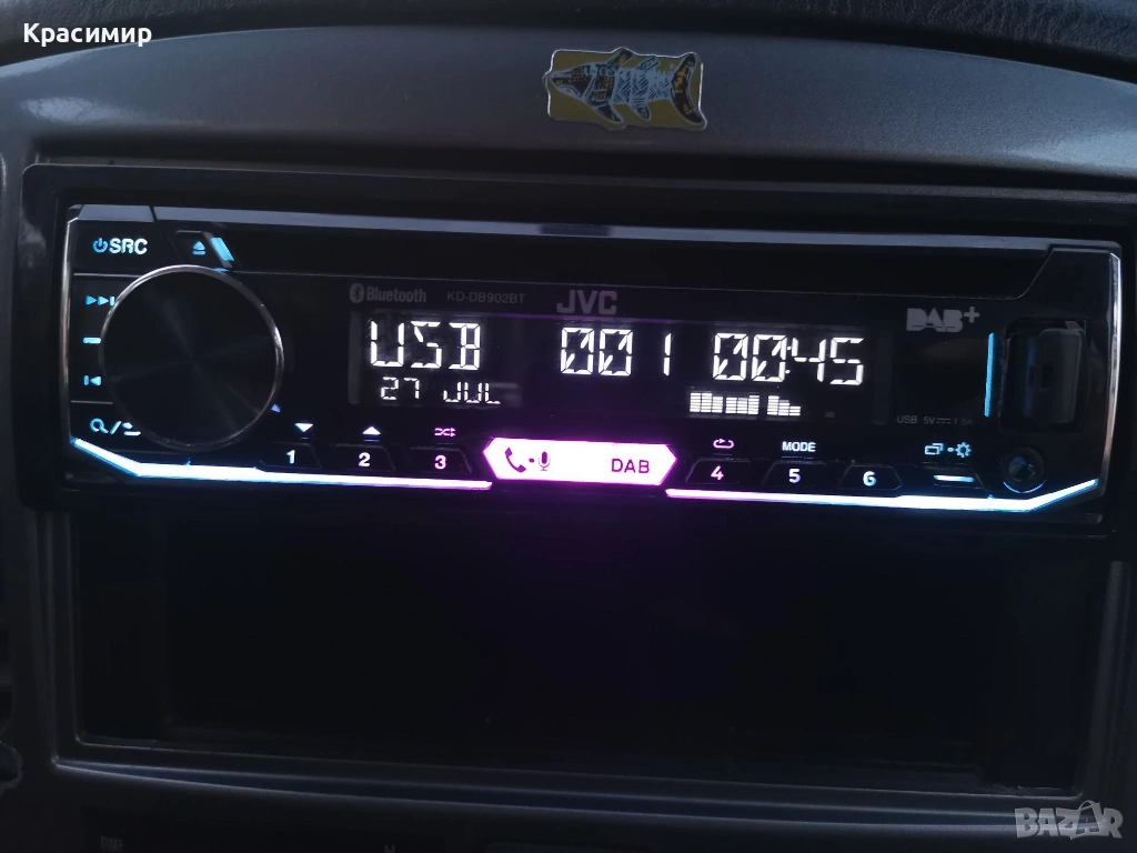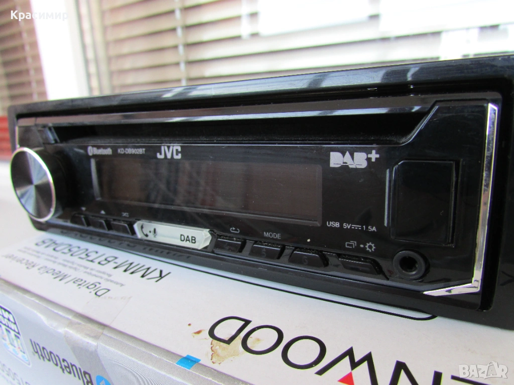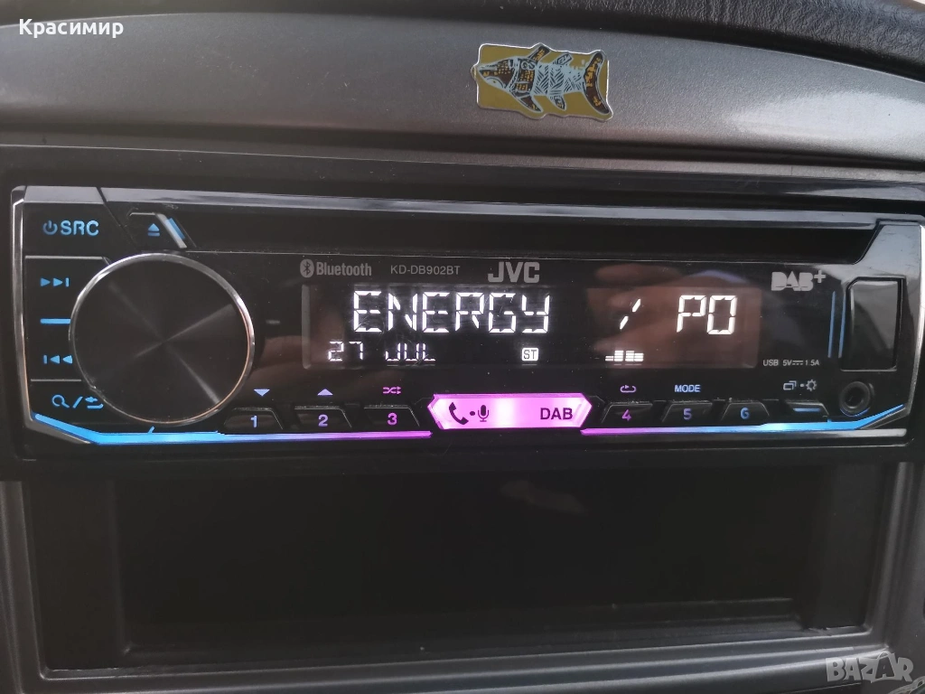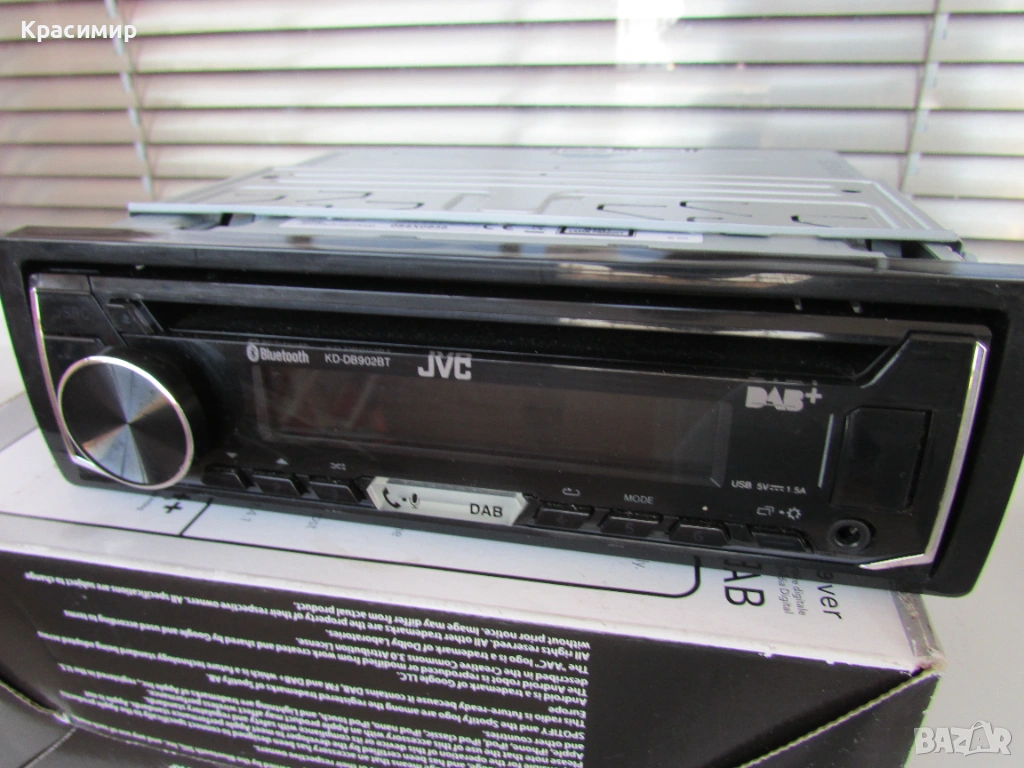 CD плеър за кола JVC KD-DB902BT, с 13-бандов графичен еквалайзер iEQ и DSP, който ви позволява ръчно да регулирате звука според вашите предпочитания, по време на изпълнение. Bluetooth разговори със свободни ръце и безжичен стрийминг на музика с приложенията Spotify и JVC Remote, със свързване на до 5 устройства едновременно. Има голям LCD дисплей с широк ъгъл на видимост в комбинация с променливо 2 - зонно цветно осветление на предния панел. Има усилвател с мощност 4 x 50 W, а ако искате да добавите външни усилватели, на задния панел са разположени 3 x 4.0V предусилватели. Лесно се сдвояване, с гласово управление за iOS/Android до 2 телефона едновременно с Bluetooth, регулиране на яркостта (дисплей/бутон), и приложение за дистанционно управление чрез смартфон. Разполага с преден AUX вход и USB вход. Може да възпроизвежда файлове във формати MP3, WMA, AAC WAV и FLAC чрез USB, и функция за зареждане 1.5A. С вграденото DAB+ цифрово радио може да се наслаждавате на DAB+ аудио станции, а в райони, където DAB сигналите са слаби, вградения тунер, безпроблемно превключва между DAB+ и FM без звуково прекъсване. CD - то е купувано от Англия, и е в перфектно работещо и визуално състояние. В комплект с шейна и кабели - евробукса за свързване. Произведено в Индонезия.