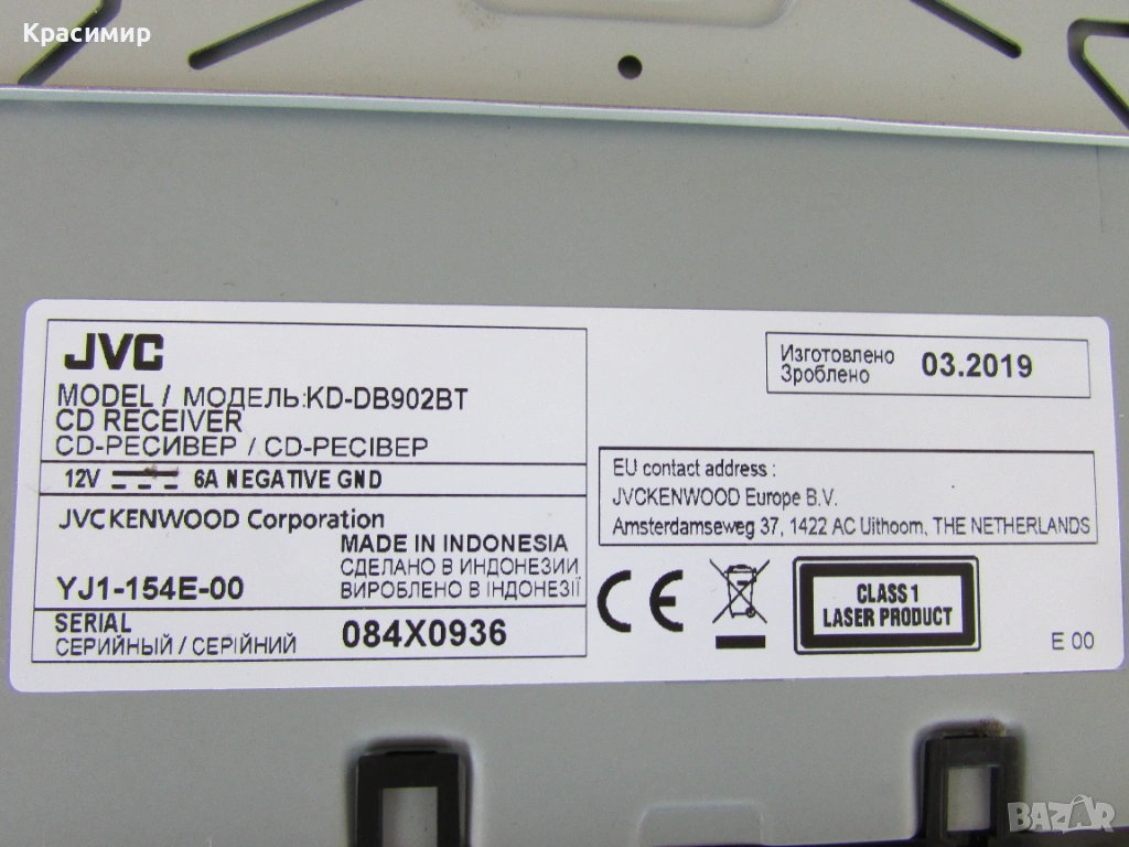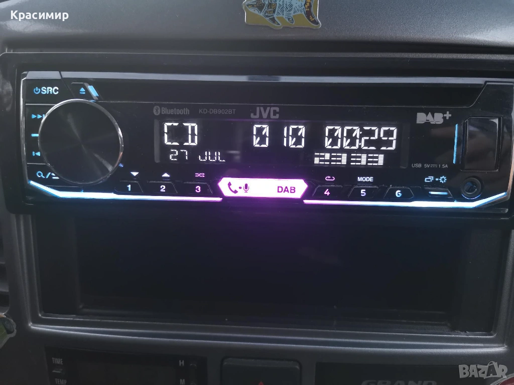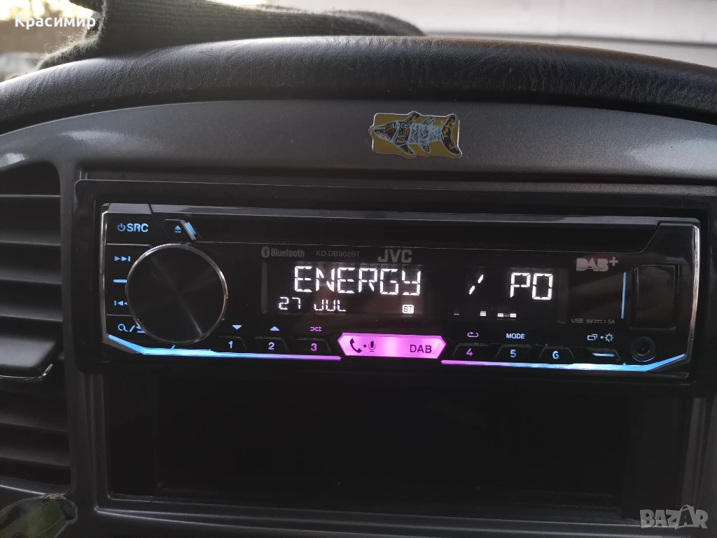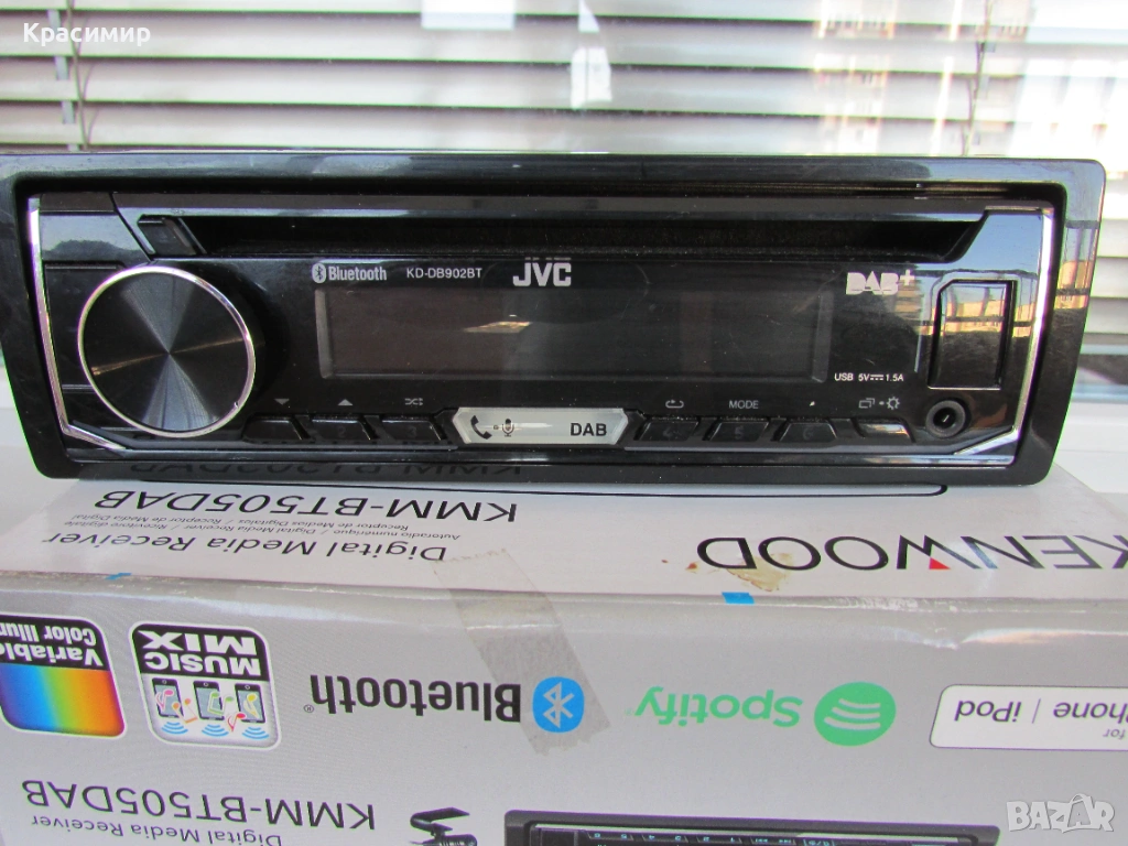 CD плеър за кола JVC KD-DB902BT, с 13-бандов графичен еквалайзер iEQ и DSP, който ви позволява ръчно да регулирате звука според вашите предпочитания, по време на изпълнение. Bluetooth разговори със свободни ръце и безжичен стрийминг на музика с приложенията Spotify и JVC Remote, със свързване на до 5 устройства едновременно. Има голям LCD дисплей с широк ъгъл на видимост в комбинация с променливо 2 - зонно цветно осветление на предния панел. Има усилвател с мощност 4 x 50 W, а ако искате да добавите външни усилватели, на задния панел са разположени 3 x 4.0V предусилватели. Лесно се сдвояване, с гласово управление за iOS/Android до 2 телефона едновременно с Bluetooth, регулиране на яркостта (дисплей/бутон), и приложение за дистанционно управление чрез смартфон. Разполага с преден AUX вход и USB вход. Може да възпроизвежда файлове във формати MP3, WMA, AAC WAV и FLAC чрез USB, и функция за зареждане 1.5A. С вграденото DAB+ цифрово радио може да се наслаждавате на DAB+ аудио станции, а в райони, където DAB сигналите са слаби, вградения тунер, безпроблемно превключва между DAB+ и FM без звуково прекъсване. CD - то е купувано от Англия, и е в перфектно работещо и визуално състояние. В комплект с шейна и кабели - евробукса за свързване. Произведено в Индонезия.