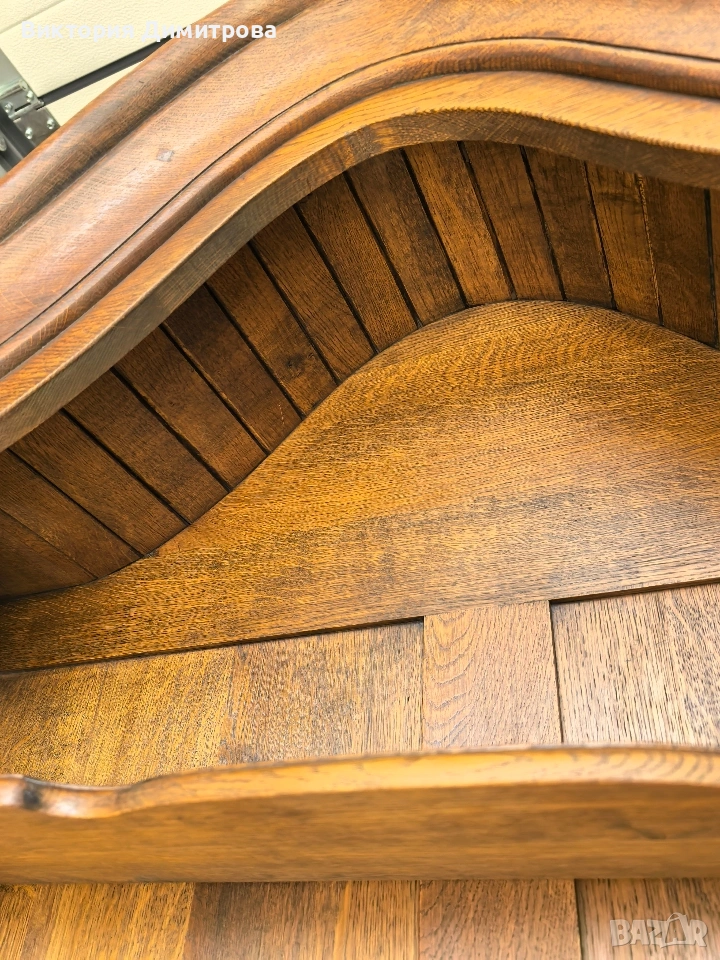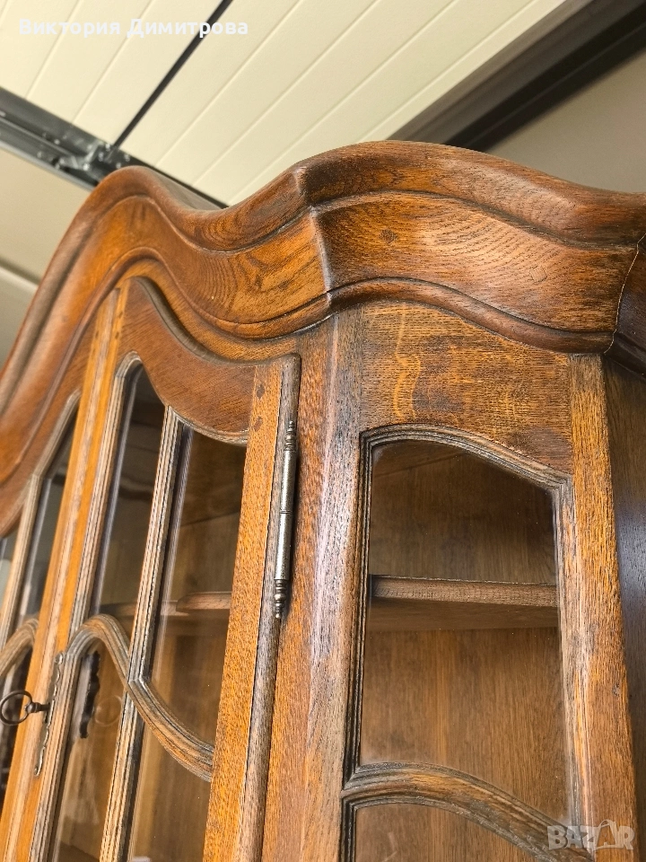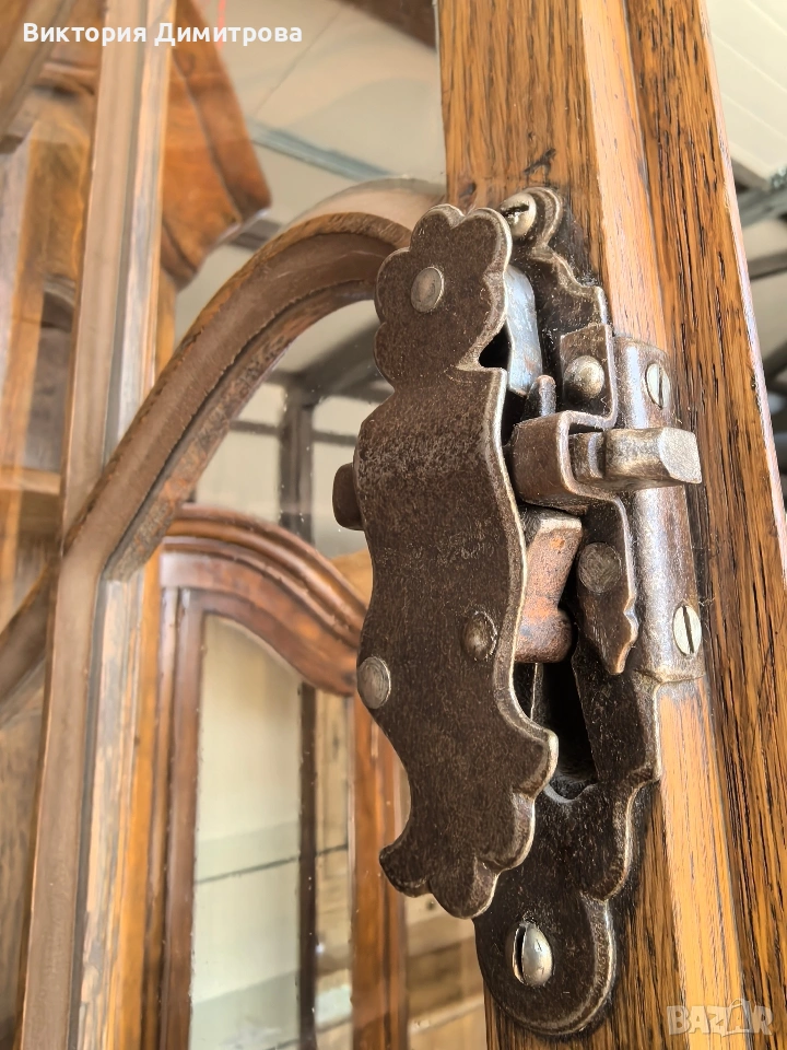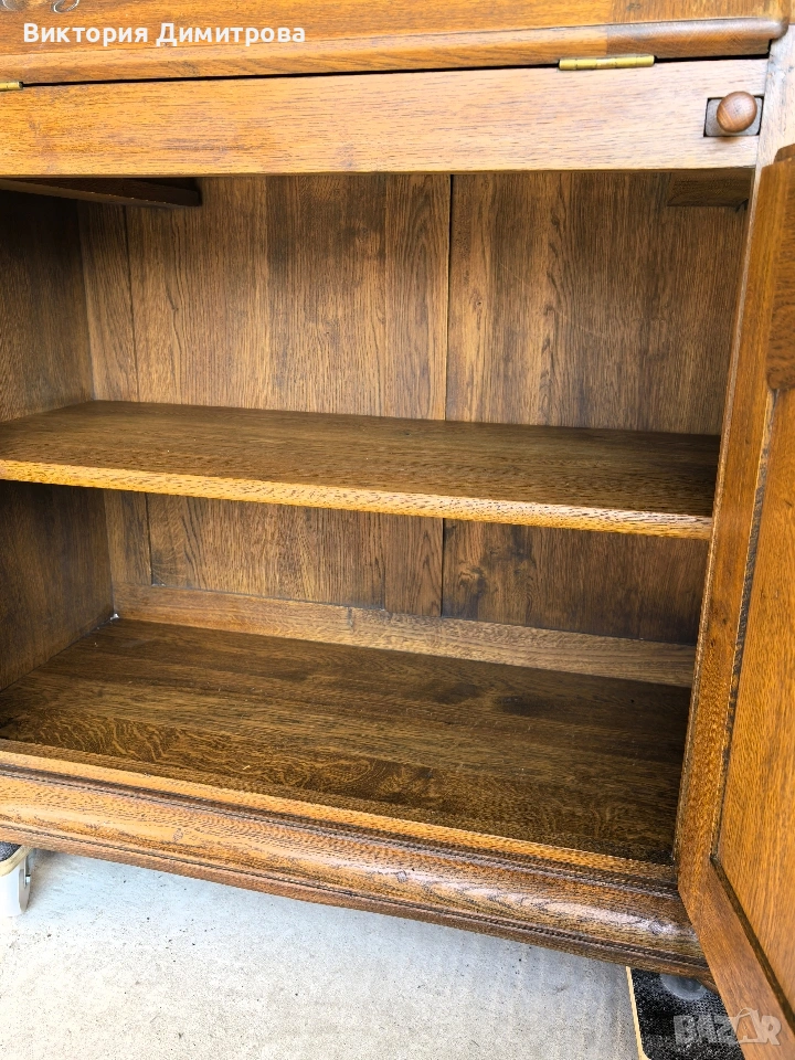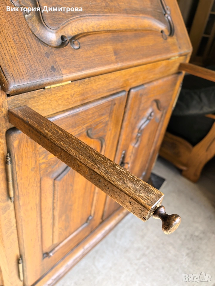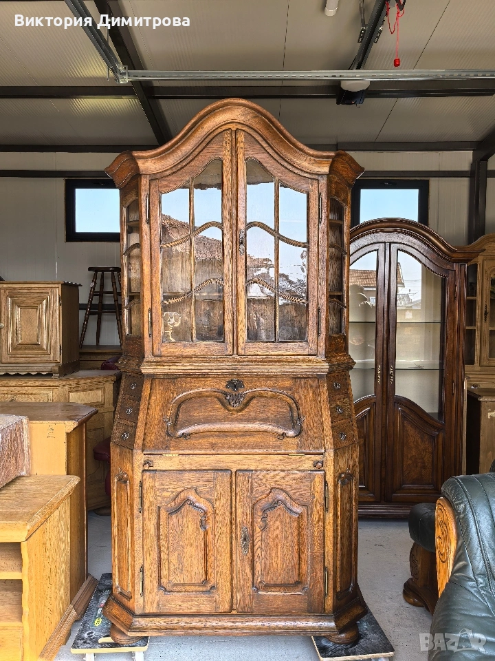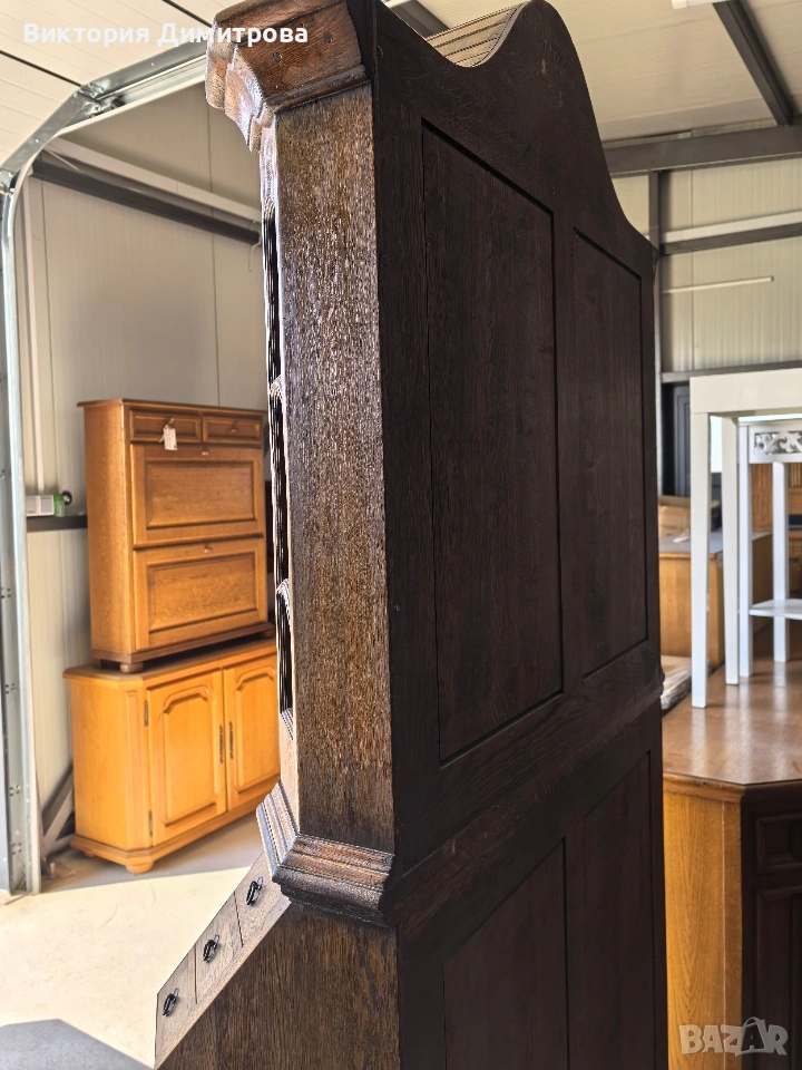 Античен Секретар с витрина / Писалище с надстройка ✨️ Рустикален Стил ✨️ МАСИВ дъб (Eiche Vollholz) ✨️ Производител: FORM Exclusiv (FORM exclusiv-werkstätten), W. Germany ✨️ Прогнозен период: кр. на 60-те години ✨️ Два модула ✨️ Оригинални старинни ключалки и ключ ✨️ Витрина (надстройка) със стъклени врати ✨ Секретар (Писалище) с падащ борд, осигуряващ работна зона ✨️ Шкаф с две врати за съхранение ✨️ Странични чекмеджета - 6 бр. 📚 при поръчка: код 01-122 ⚜️⚜️⚜️ Цена: 499.00 € ⚜️⚜️⚜️ Размери: Широчина: 108 см. Дълбочина: 50 см. Дълбочина с писалищната зона: 82 см. Височина: 218 см. Височина на писалищната зона: 75 см. ⚜️⚜️⚜️ Втора употреба! Състояние: В много добро ретро състояние! 👉Възможни са следи от употреба и/или износване. Внос Германия! 🇩🇪🇩🇪🇩🇪