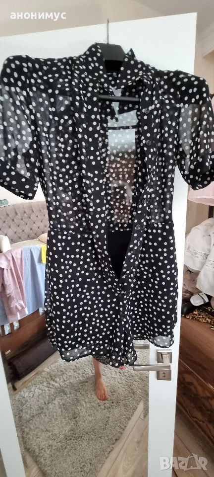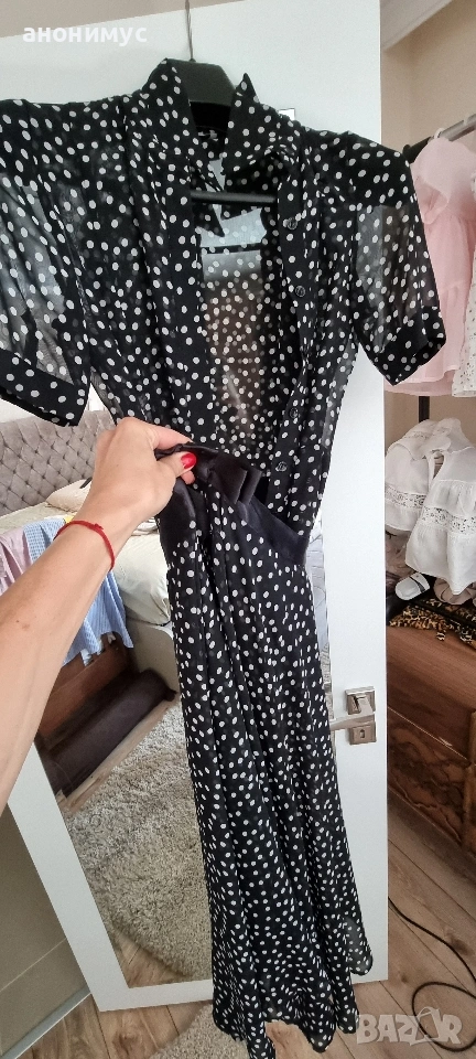 Страхотен къс гащеризон с дълга Пола на малки точки.Класика.Обличан 3 пъти.Без забележки.