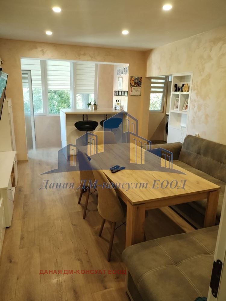 Тристаен ТУХЛЕН апартамент с площ от 91кв.м. на 2-ри жилищен етаж от 5 етажна кооперация в близост до CITY CENTER .Към имота има изба и таванско помещение(12кв.м.), и ГАРАЖ (21кв.м.).Жилището е разпределено на : коридор , три стаи , кухня с трапезария, баня и тоалетна в две отделни помещения, две тераси.Апартамента е след основен ремонт от 2023г. извършен с качествени материали:подменени PVC ,ВиК, и ЕЛ инсталации, изолация на стени и тавани, нови подови настилки , модерно обзавеждане.Жилището се предлага с наличното обзавеждане.Подходящ за инвестиция имот.Намира се в най предпочитания район ,в близост са училища , детски градини и магазини.