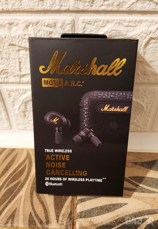 Нови безжични слушалки Marshall Motif ANC, никога не е ползвани. Пълен комплект с кутия, кабел, тапи.